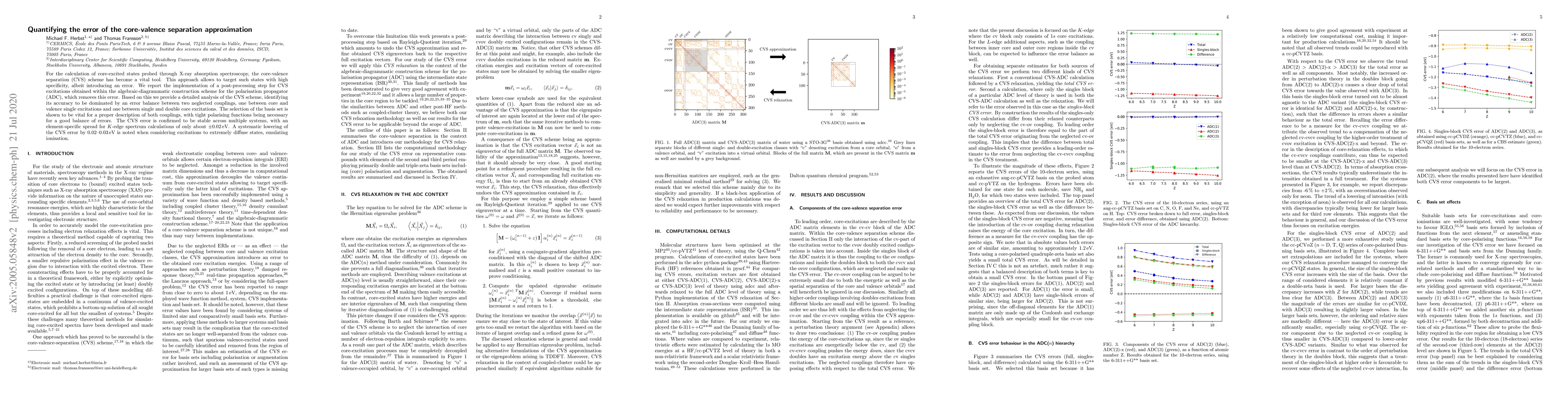 For the calculation of core-excited states probed through X-ray absorption spectroscopy, the core-valence separation (CVS) scheme has become a vital tool. This approach allows to target such states with high specificity, albeit introducing an error. We report the implementation of a post-processing step for CVS excitations obtained within the algebraic-diagrammatic construction scheme for the polarisation propagator (ADC), which removes this error. Based on this we provide a detailed analysis of the CVS scheme, identifying its accuracy to be dominated by an error balance between two neglected couplings, one between core and valence single excitations and one between single and double core excitations. The selection of the basis set is shown to be vital for a proper description of both couplings, with tight polarising functions being necessary for a good balance of errors. The CVS error is confirmed to be stable across multiple systems, with an element-specific spread for $K$-edge spectrum calculations of about $\pm$0.02 eV. A systematic lowering of the CVS error by 0.02-0.03 eV is noted when considering excitations to extremely diffuse states, emulating ionisation.