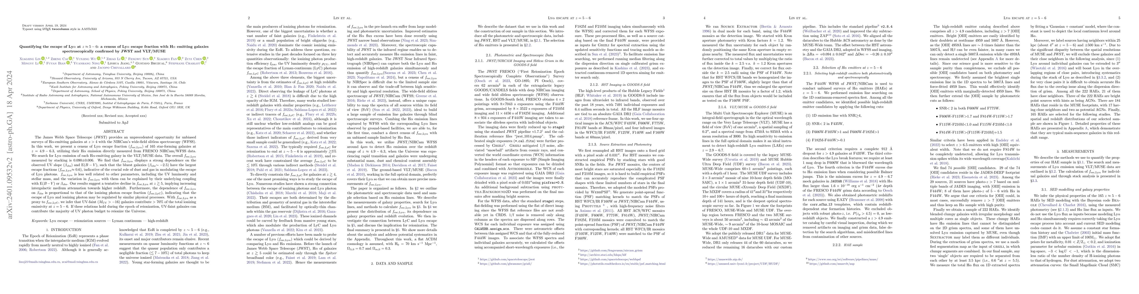This study uses JWST and VLT/MUSE data to measure the Ly$\alpha$ escape fraction ($f_{esc, Ly\alpha}$) in 165 star-forming galaxies at $z=4.9-6.3$, finding an overall $f_{esc, Ly\alpha}$ of $0.090\pm0.006$. The research reveals a strong correlation between $f_{esc, Ly\alpha}$ and the UV slope, suggesting that dust and gas significantly influence Ly$\alpha$ photon escape.