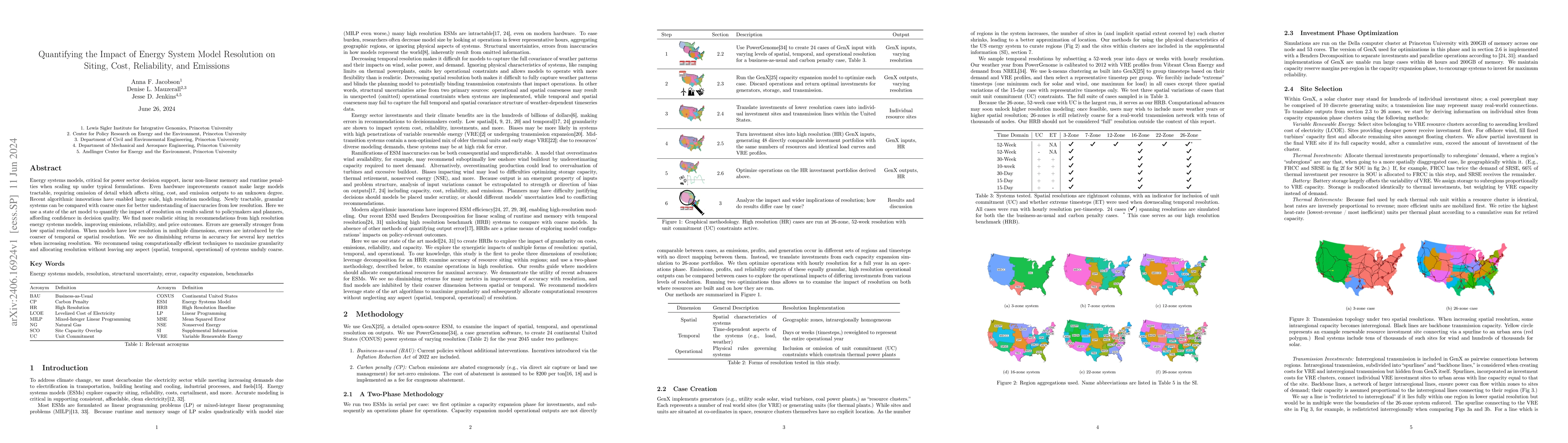 Energy systems models, critical for power sector decision support, incur non-linear memory and runtime penalties when scaling up under typical formulations. Even hardware improvements cannot make large models tractable, requiring omission of detail which affects siting, cost, and emission outputs to an unknown degree. Recent algorithmic innovations have enabled large scale, high resolution modeling. Newly tractable, granular systems can be compared with coarse ones for better understanding of inaccuracies from low resolution. Here we use a state of the art model to quantify the impact of resolution on results salient to policymakers and planners, affording confidence in decision quality. We find more realistic siting in recommendations from high resolution energy systems models, improving emissions, reliability, and price outcomes. Errors are generally stronger from low spatial resolution. When models have low resolution in multiple dimensions, errors are introduced by the coarser of temporal or spatial resolution. We see no diminishing returns in accuracy for several key metrics when increasing resolution. We recommend using computationally efficient techniques to maximize granularity and allocating resolution without leaving any aspect (spatial, temporal, operational) of systems unduly coarse.