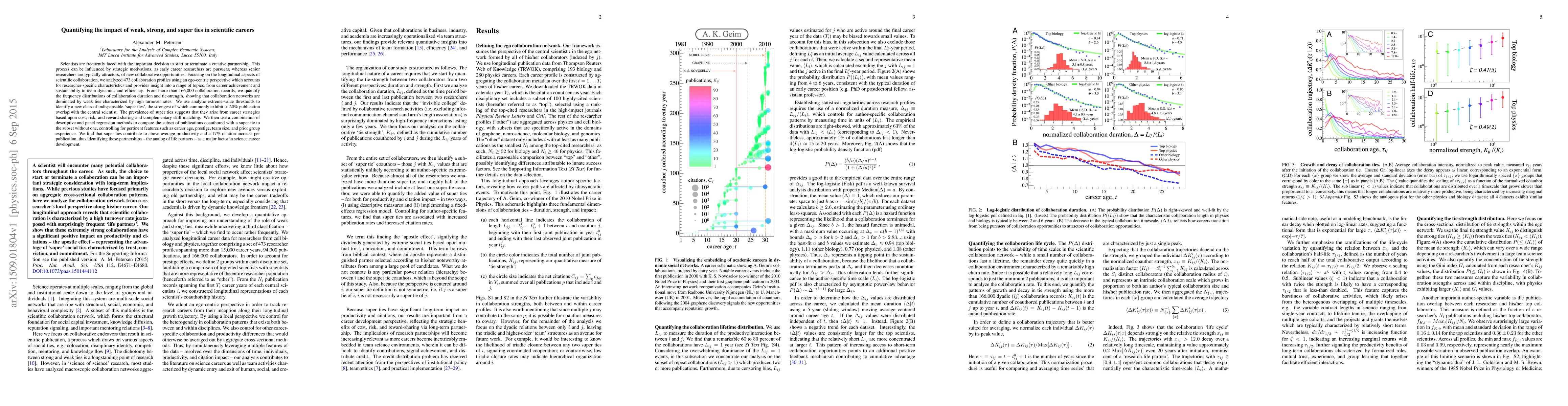 This research examines the impact of different types of scientific collaborations on career development, finding that "super ties" characterized by high publication overlap significantly enhance productivity and citation rates. It highlights the importance of strong partnerships in scientific careers, showing a 17% increase in citations per publication compared to those without such strong ties.