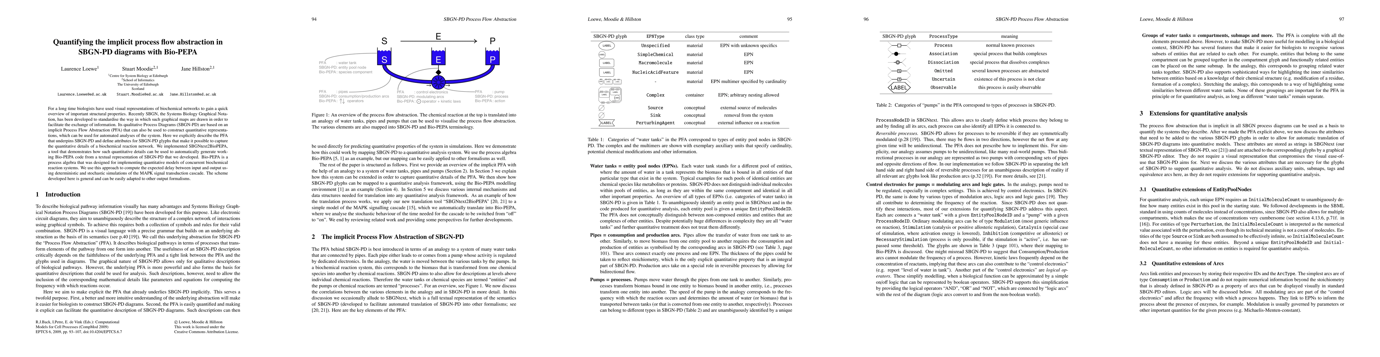 This paper quantifies the implicit process flow abstraction in SBGN-PD diagrams using Bio-PEPA, developing a tool to convert SBGN-PD textual representations into Bio-PEPA code for automated quantitative analysis, demonstrated through simulations of the MAPK signal transduction cascade.