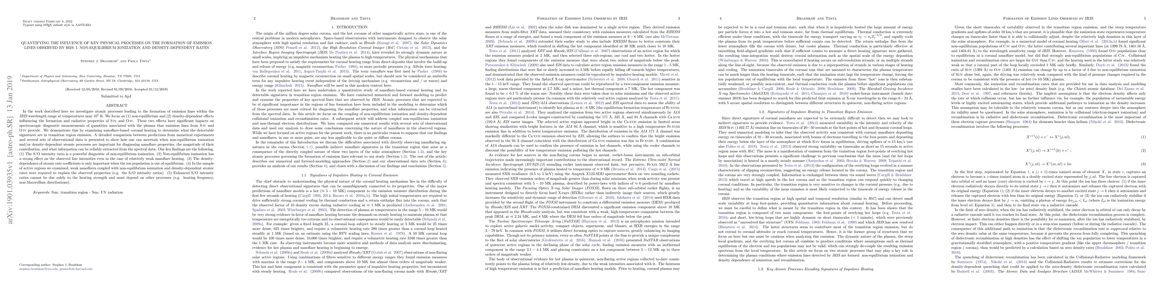 In the work described here we investigate atomic processes leading to the formation of emission lines within the IRIS wavelength range at temperatures near $10^5$~K. We focus on (1) non-equilibrium and (2) density-dependent effects influencing the formation and radiative properties of S IV and O IV. These two effects have significant impacts on spectroscopic diagnostic measurements of quantities associated with the plasma that emission lines from S IV and O IV provide. We demonstrate this by examining nanoflare-based coronal heating to determine what the detectable signatures are in transition region emission. A detailed comparison between predictions from numerical experiments and several sets of observational data is presented to show how one can ascertain when non-equilibrium ionization and/or density-dependent atomic processes are important for diagnosing nanoflare properties, the magnitude of their contribution, and what information can be reliably extracted from the spectral data. Our key findings are the following. (1) The S/O intensity ratio is a powerful diagnostic of non-equilibrium ionization. (2) Non-equilibrium ionization has a strong effect on the observed line intensities even in the case of relatively weak nanoflare heating. (3) The density-dependence of atomic rate coefficients is only important when the ion population is out of equilibrium. (4) In the sample of active regions we examined, weak nanoflares coupled with non-equilibrium ionization and density-dependent atomic rates were required to explain the observed properties (e.g. the S/O intensity ratios). (5) Enhanced S/O intensity ratios cannot be due solely to the heating strength and must depend on other processes (e.g. heating frequency, non-Maxwellian distributions).