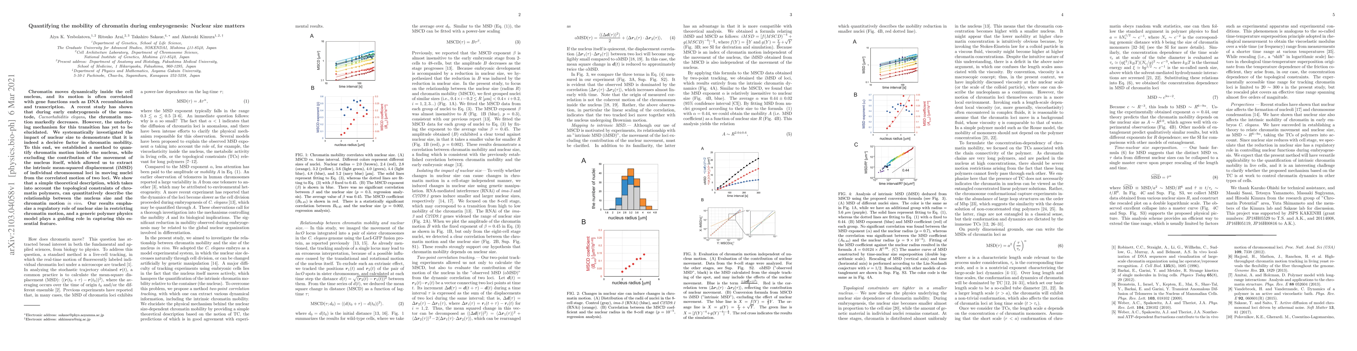 This study investigates how nuclear size influences chromatin mobility during early embryogenesis in C. elegans, demonstrating that smaller nuclei restrict chromatin movement. The research establishes a method to quantify chromatin motion independently of nuclear movement, revealing a correlation between nucleus size and chromatin dynamics governed by polymer physics principles.