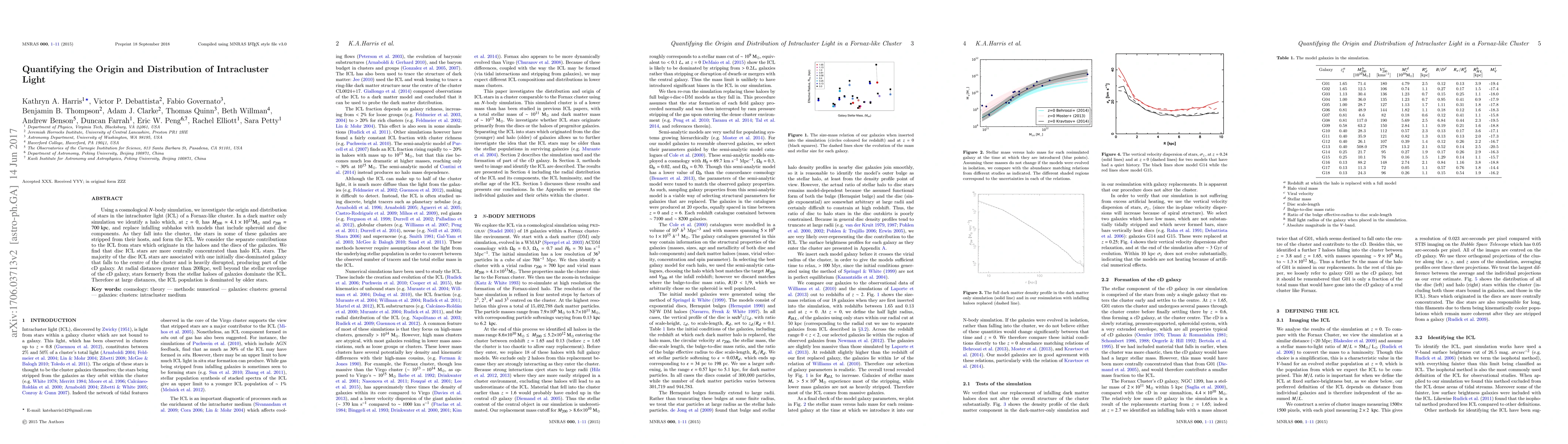 This study uses a cosmological $N$-body simulation to explore the origin and distribution of intracluster light (ICL) in a Fornax-like cluster, finding that disc stars contribute more centrally concentrated ICL, while halo stars dominate at larger distances, indicating an older stellar population beyond 200kpc.