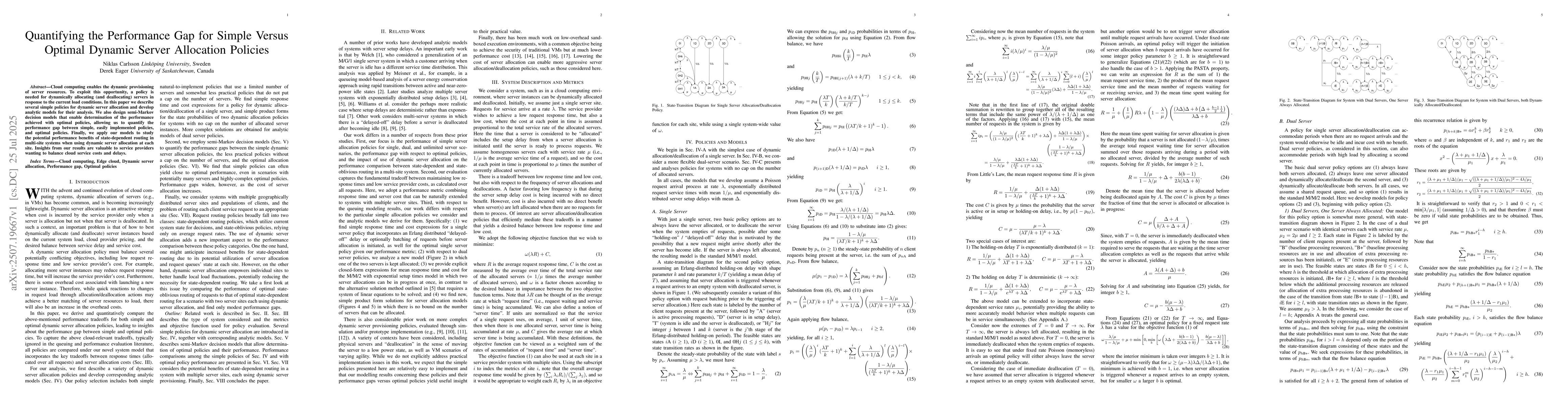 Cloud computing enables the dynamic provisioning of server resources. To exploit this opportunity, a policy is needed for dynamically allocating (and deallocating) servers in response to the current load conditions. In this paper we describe several simple policies for dynamic server allocation and develop analytic models for their analysis. We also design semi-Markov decision models that enable determination of the performance achieved with optimal policies, allowing us to quantify the performance gap between simple, easily implemented policies, and optimal policies. Finally, we apply our models to study the potential performance benefits of state-dependent routing in multi-site systems when using dynamic server allocation at each site. Insights from our results are valuable to service providers wanting to balance cloud service costs and delays.