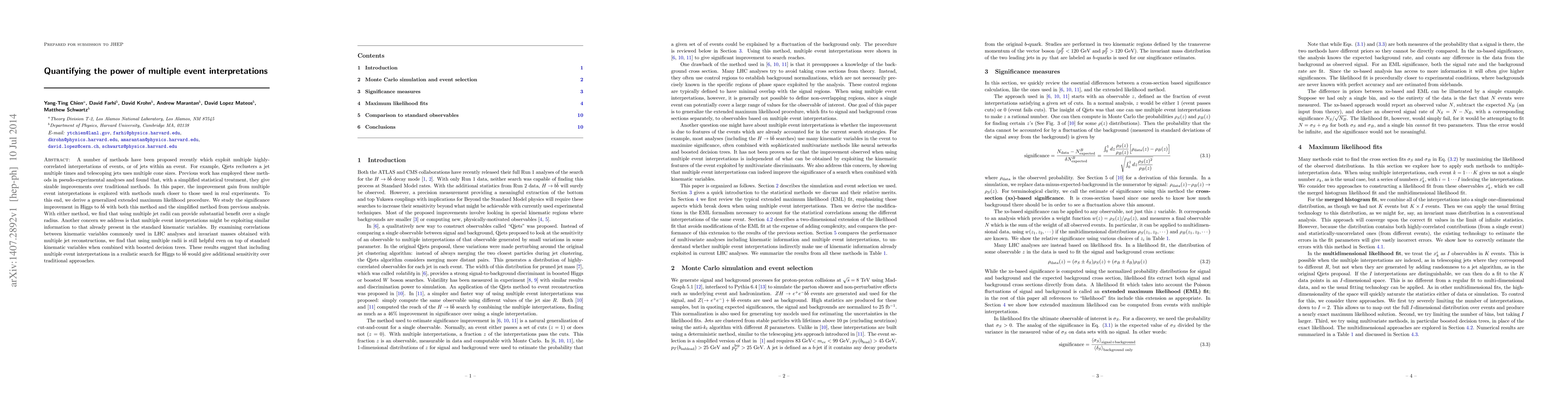A number of methods have been proposed recently which exploit multiple highly-correlated interpretations of events, or of jets within an event. For example, Qjets reclusters a jet multiple times and telescoping jets uses multiple cone sizes. Previous work has employed these methods in pseudo-experimental analyses and found that, with a simplified statistical treatment, they give sizable improvements over traditional methods. In this paper, the improvement gain from multiple event interpretations is explored with methods much closer to those used in real experiments. To this end, we derive a generalized extended maximum likelihood procedure. We study the significance improvement in Higgs to bb with both this method and the simplified method from previous analysis. With either method, we find that using multiple jet radii can provide substantial benefit over a single radius. Another concern we address is that multiple event interpretations might be exploiting similar information to that already present in the standard kinematic variables. By examining correlations between kinematic variables commonly used in LHC analyses and invariant masses obtained with multiple jet reconstructions, we find that using multiple radii is still helpful even on top of standard kinematic variables when combined with boosted decision trees. These results suggest that including multiple event interpretations in a realistic search for Higgs to bb would give additional sensitivity over traditional approaches.