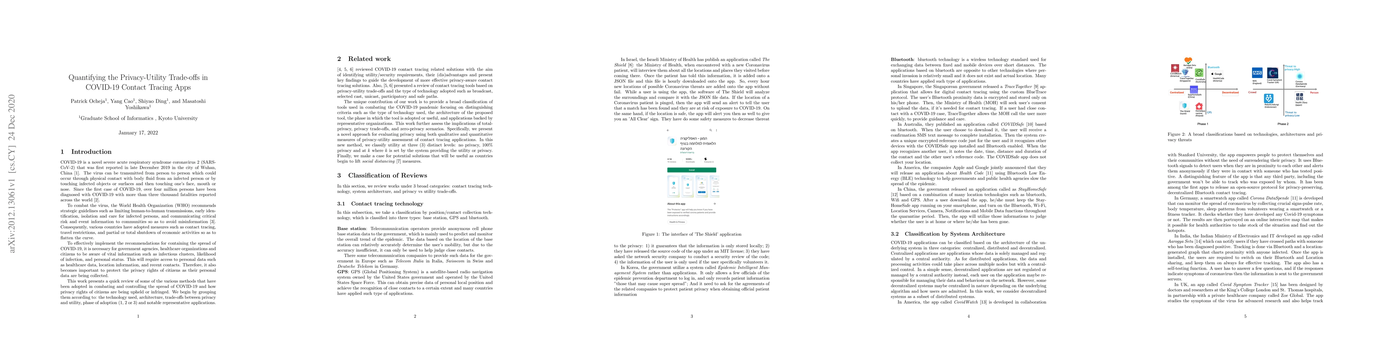 This paper reviews various COVID-19 containment strategies, focusing on contact tracing technologies. It introduces a novel method to evaluate privacy-utility trade-offs in contact tracing apps, classifying utility levels to assess privacy quantitatively and qualitatively.