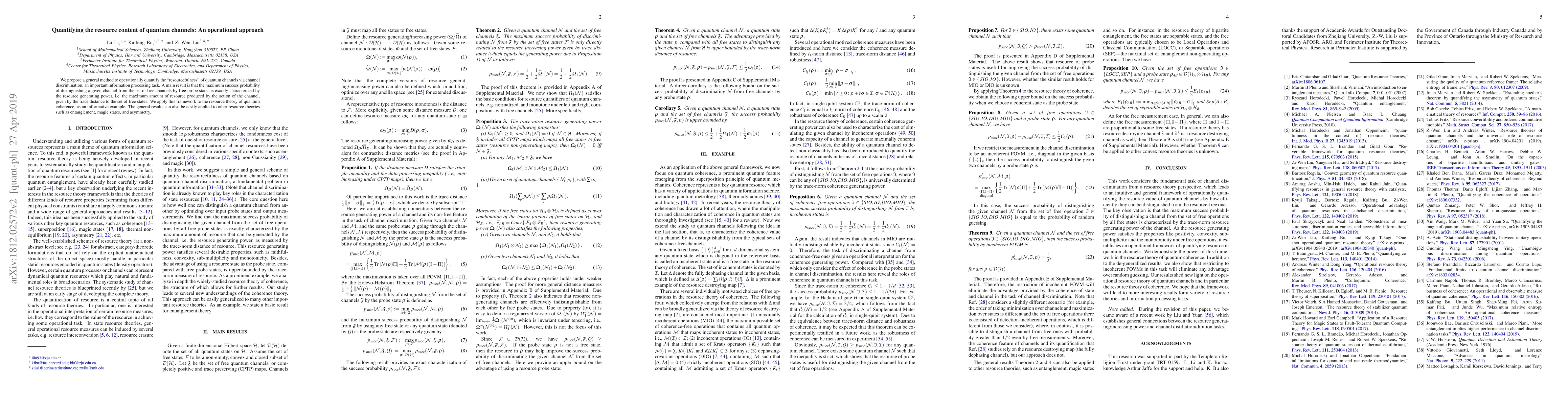 We propose a general method to operationally quantify the resourcefulness of quantum channels via channel discrimination, an important information processing task. A main result is that the maximum success probability of distinguishing a given channel from the set of free channels by free probe states is exactly characterized by the resource generating power, i.e. the maximum amount of resource produced by the action of the channel, given by the trace distance to the set of free states. We apply this framework to the resource theory of quantum coherence, as an informative example. The general results can also be easily applied to other resource theories such as entanglement, magic states, and asymmetry.