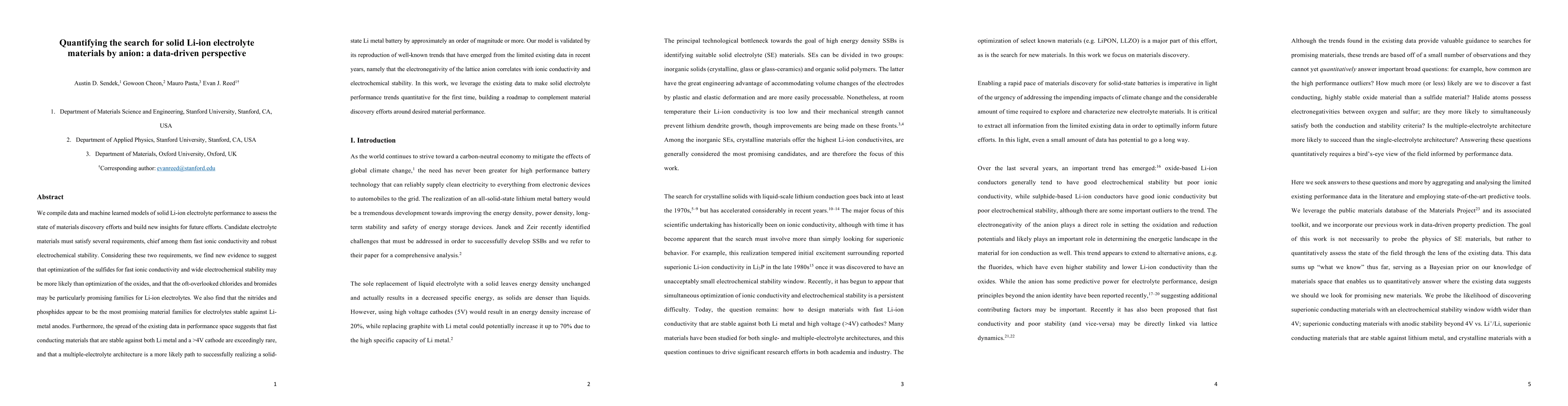 Researchers developed a data-driven approach to identify promising materials for solid Li-ion electrolytes, finding that sulfides and chlorides may be more likely to meet performance requirements than oxides, while nitrides and phosphides show stability against Li metal anodes.