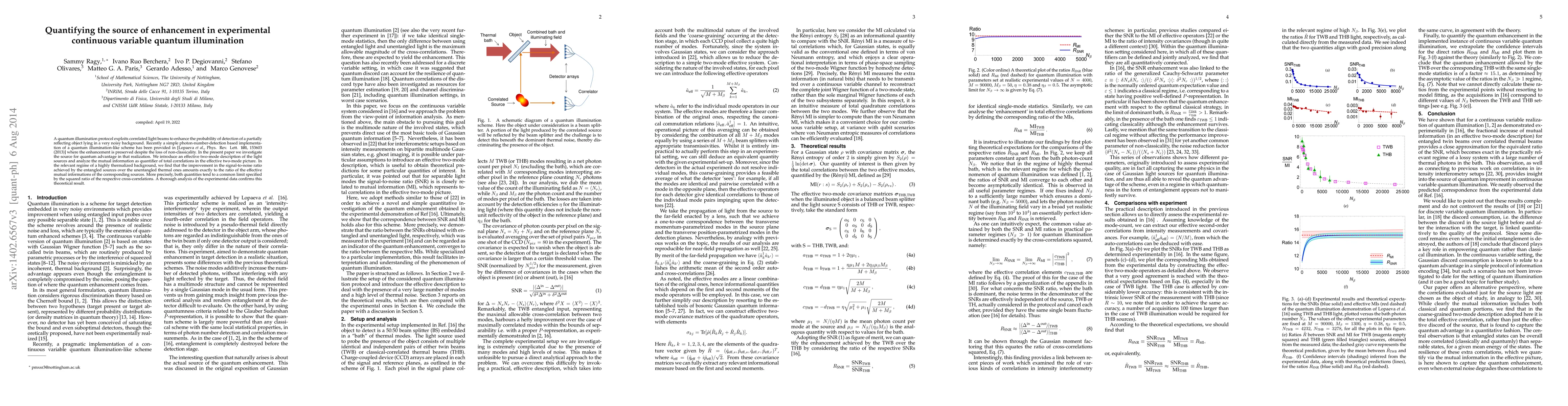 This paper investigates the source of quantum advantage in a continuous variable quantum illumination protocol, demonstrating that the enhancement in detection probability is quantified by the mutual information of the effective two-mode light sources. The study finds that the signal-to-noise ratio improvement is directly related to the ratio of the effective mutual informations of the entangled versus thermal sources.