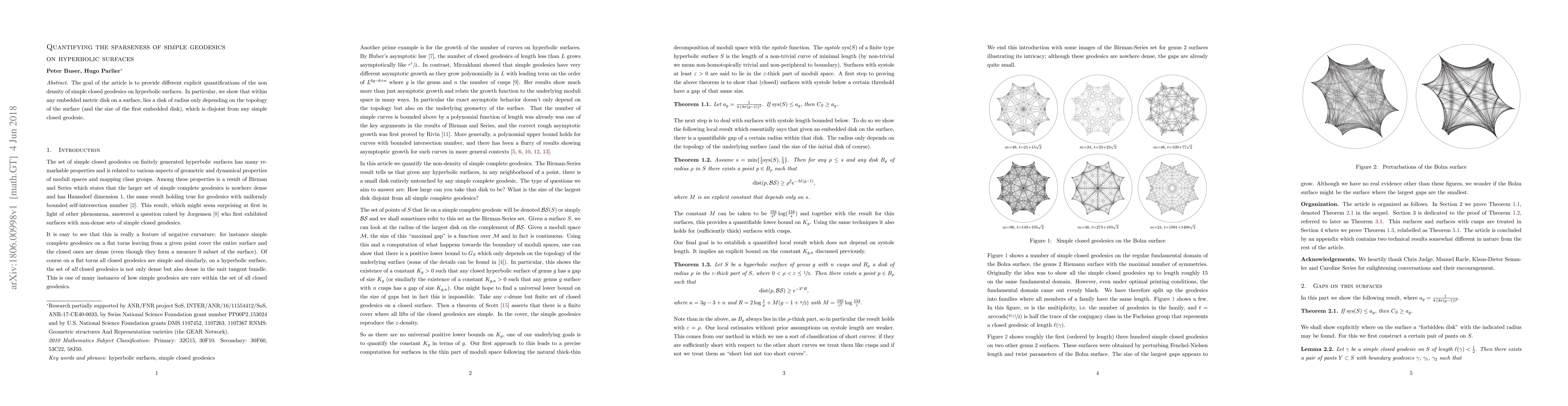 Researchers found that simple closed geodesics on hyperbolic surfaces have a sparse distribution, with a specific radius of embedded metric disks that remain disjoint from the geodesics.
