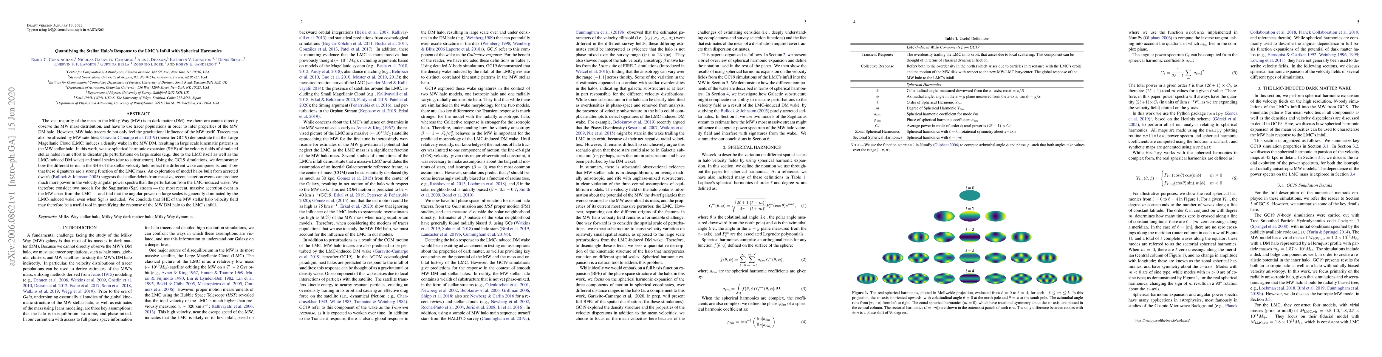 The vast majority of the mass in the Milky Way (MW) is in dark matter (DM); we therefore cannot directly observe the MW mass distribution, and have to use tracer populations in order to infer properties of the MW DM halo. However, MW halo tracers do not only feel the gravitational influence of the MW itself. Tracers can also be affected by MW satellites; Garavito-Camargo et al. (2019) (hereafter GC19) demonstrate that the Large Magellanic Cloud (LMC) induces a density wake in the MW DM, resulting in large scale kinematic patterns in the MW stellar halo. In this work, we use spherical harmonic expansion (SHE) of the velocity fields of simulated stellar halos in an effort to disentangle perturbations on large scales (e.g., due to the LMC itself as well as the LMC-induced DM wake) and small scales (due to substructure). Using the GC19 simulations, we demonstrate how the different terms in the SHE of the stellar velocity field reflect the different wake components, and show that these signatures are a strong function of the LMC mass. An exploration of model halos built from accreted dwarfs Bullock & Johnston (2005) suggests that stellar debris from massive, recent accretion events can produce much more power in the velocity angular power spectra than the perturbation from the LMC-induced wake. We therefore consider two models for the Sagittarius (Sgr) stream -- the most recent, massive accretion event in the MW apart from the LMC -- and find that the angular power on large scales is generally dominated by the LMC-induced wake, even when Sgr is included. We conclude that SHE of the MW stellar halo velocity field may therefore be a useful tool in quantifying the response of the MW DM halo to the LMC's infall.