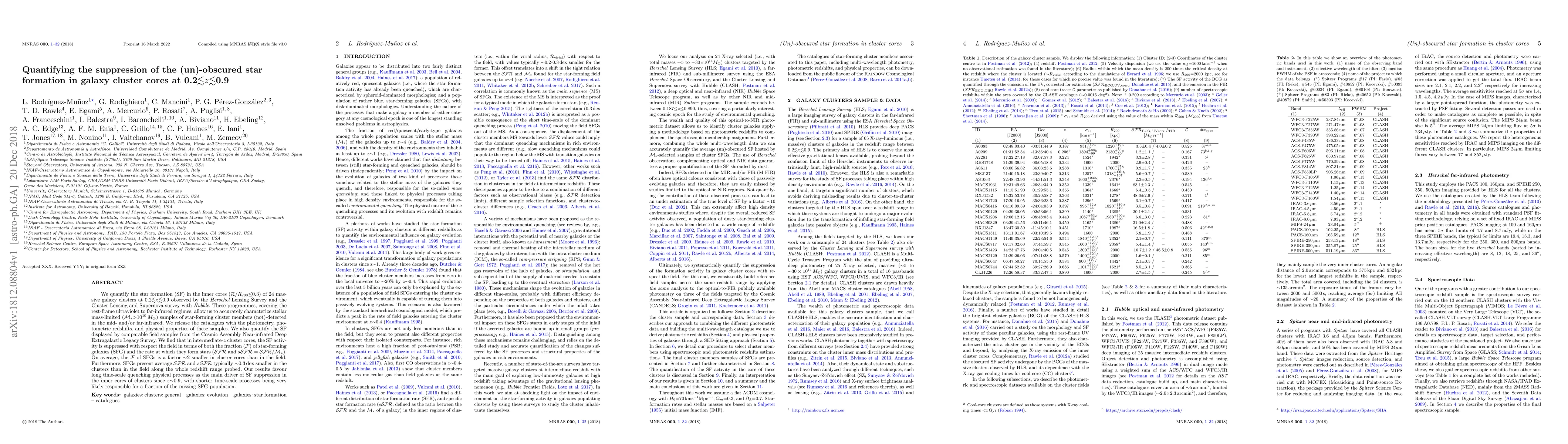 We quantify the star formation (SF) in the inner cores ($\mathcal{R}$/$R_{200}$$\leq$0.3) of 24 massive galaxy clusters at 0.2$\lesssim$$z$$\lesssim$0.9 observed by the $Herschel$ Lensing Survey and the Cluster Lensing and Supernova survey with $Hubble$. These programmes, covering the rest-frame ultraviolet to far-infrared regimes, allow us to accurately characterize stellar mass-limited ($\mathcal{M}_{*}$$>$$10^{10}$ $M_{\odot}$) samples of star-forming cluster members (not)-detected in the mid- and/or far-infrared. We release the catalogues with the photometry, photometric redshifts, and physical properties of these samples. We also quantify the SF displayed by comparable field samples from the Cosmic Assembly Near-infrared Deep Extragalactic Legacy Survey. We find that in intermediate-$z$ cluster cores, the SF activity is suppressed with respect the field in terms of both the fraction ($\mathcal{F}$) of star-forming galaxies (SFG) and the rate at which they form stars ($\mathcal{SFR}$ and $s\mathcal{SFR} = \mathcal{SFR}/\mathcal{M}_{*}$). On average, the $\mathcal{F}$ of SFGs is a factor $\sim$$2$ smaller in cluster cores than in the field. Furthermore, SFGs present average $\mathcal{SFR}$ and $s\mathcal{SFR}$ typically $\sim$0.3 dex smaller in the clusters than in the field along the whole redshift range probed. Our results favour long time-scale quenching physical processes as the main driver of SF suppression in the inner cores of clusters since $z$$\sim$0.9, with shorter time-scale processes being very likely responsible for a fraction of the missing SFG population.