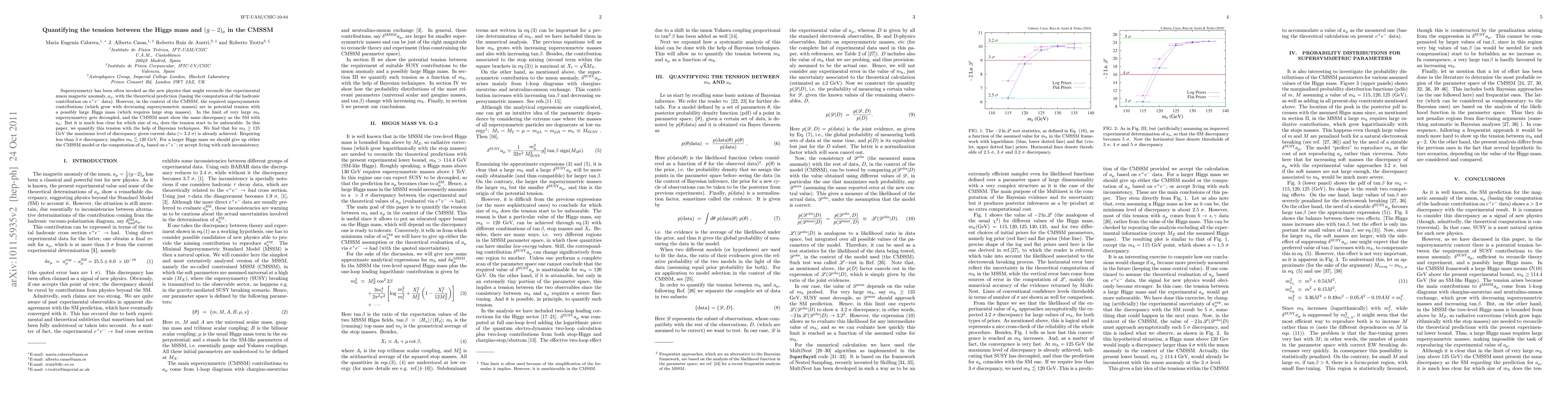 Supersymmetry has been often invoqued as the new physics that might reconcile the experimental muon magnetic anomaly, a_mu, with the theoretical prediction (basing the computation of the hadronic contribution on e^+ e^- data). However, in the context of the CMSSM, the required supersymmetric contributions (which grow with decreasing supersymmetric masses) are in potential tension with a possibly large Higgs mass (which requires large stop masses). In the limit of very large m_h supersymmetry gets decoupled, and the CMSSM must show the same discrepancy as the SM with a_mu . But it is much less clear for which size of m_h does the tension start to be unbearable. In this paper, we quantify this tension with the help of Bayesian techniques. We find that for m_h > 125 GeV the maximum level of discrepancy given current data (~ 3.3 sigma) is already achieved. Requiring less than 3 sigma discrepancy, implies m_h < 120 GeV. For a larger Higgs mass we should give up either the CMSSM model or the computation of a_mu based on e^+ e^-; or accept living with such inconsistency.