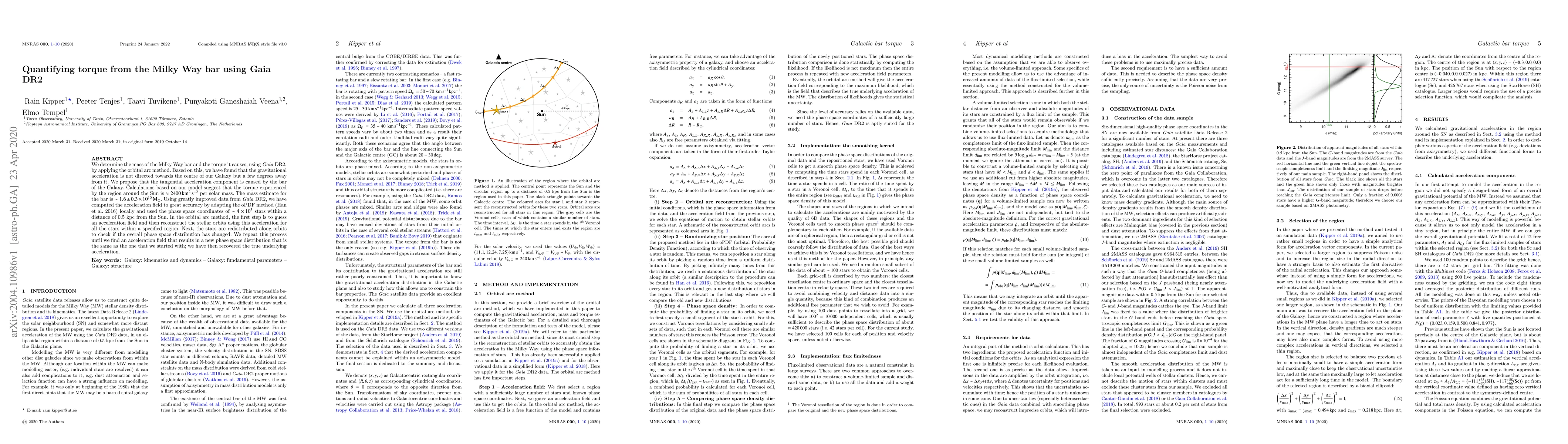 Researchers used Gaia DR2 data to estimate the mass of the Milky Way bar and calculate its torque, finding that the gravitational acceleration is not directed towards the center of the Galaxy but rather at a few degrees away from it.