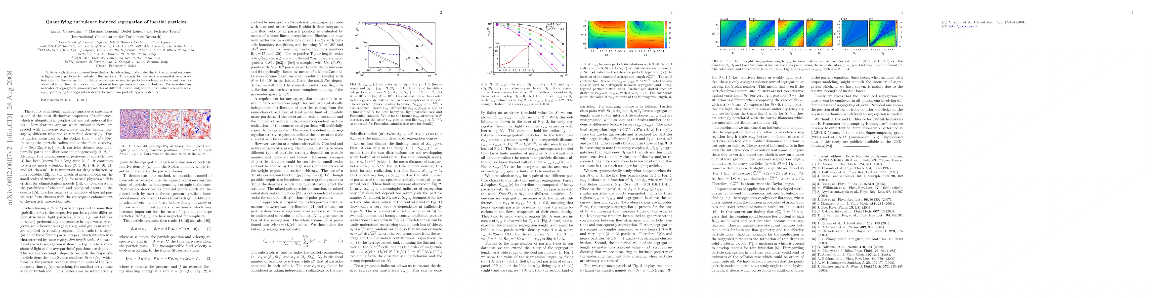 This study uses computer simulations to quantify how dense particles segregate in turbulent fluids due to differences in response to fluctuations. It introduces a length scale that measures the degree of segregation between different types of particles.