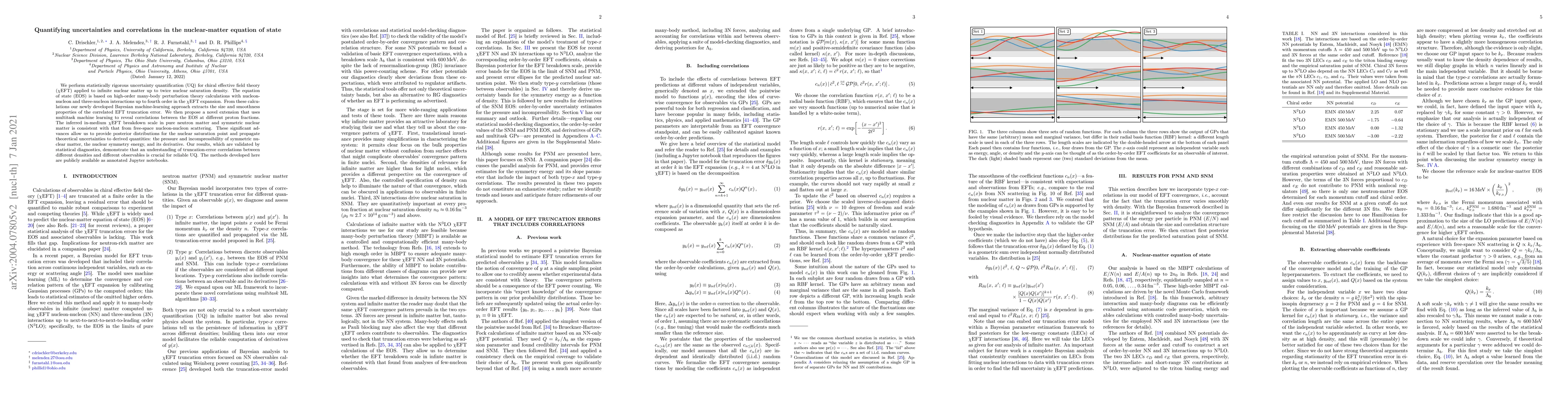 This paper rigorously quantifies uncertainties and correlations in the nuclear-matter equation of state using a Bayesian machine-learning approach, revealing insights into the breakdown scale of chiral effective field theory and providing posterior distributions for nuclear saturation point and derived quantities like pressure, incompressibility, and symmetry energy. The methods are validated and made publicly available.