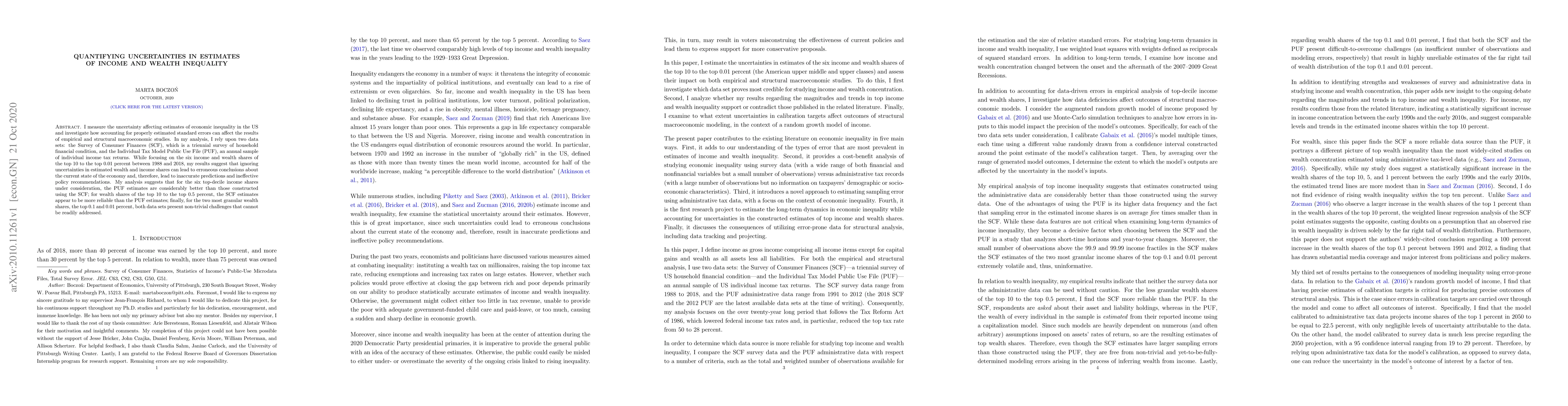 I measure the uncertainty affecting estimates of economic inequality in the US and investigate how accounting for properly estimated standard errors can affect the results of empirical and structural macroeconomic studies. In my analysis, I rely upon two data sets: the Survey of Consumer Finances (SCF), which is a triennial survey of household financial condition, and the Individual Tax Model Public Use File (PUF), an annual sample of individual income tax returns. While focusing on the six income and wealth shares of the top 10 to the top 0.01 percent between 1988 and 2018, my results suggest that ignoring uncertainties in estimated wealth and income shares can lead to erroneous conclusions about the current state of the economy and, therefore, lead to inaccurate predictions and ineffective policy recommendations. My analysis suggests that for the six top-decile income shares under consideration, the PUF estimates are considerably better than those constructed using the SCF; for wealth shares of the top 10 to the top 0.5 percent, the SCF estimates appear to be more reliable than the PUF estimates; finally, for the two most granular wealth shares, the top 0.1 and 0.01 percent, both data sets present non-trivial challenges that cannot be readily addressed.