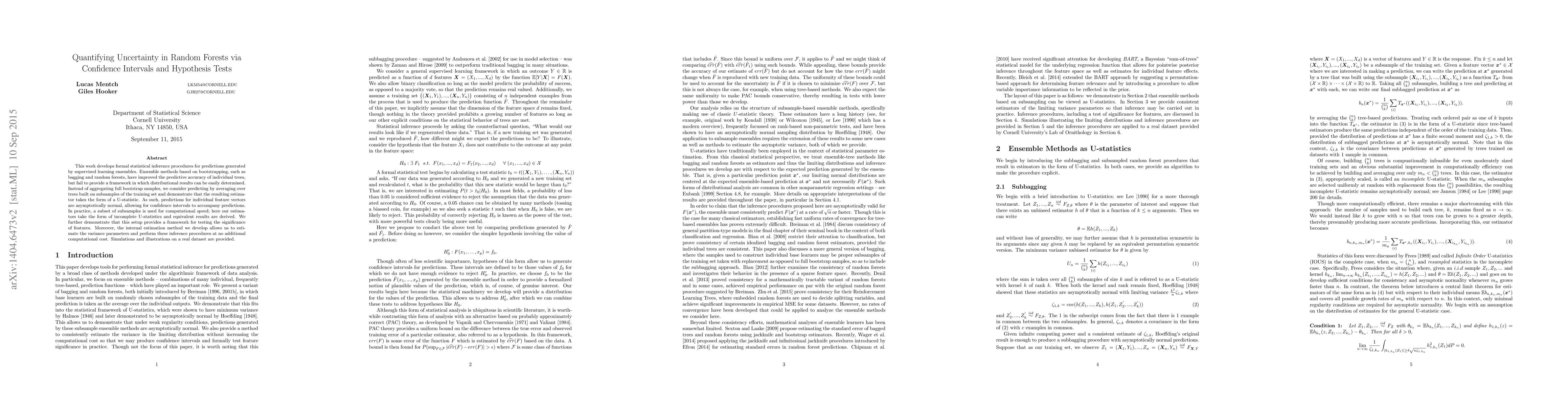 This paper develops statistical inference procedures for random forests to provide confidence intervals and hypothesis tests for feature significance, showing that predictions are asymptotically normal and variance can be estimated without additional computational cost. Simulations and real-data illustrations demonstrate the practical applicability of the proposed methods.