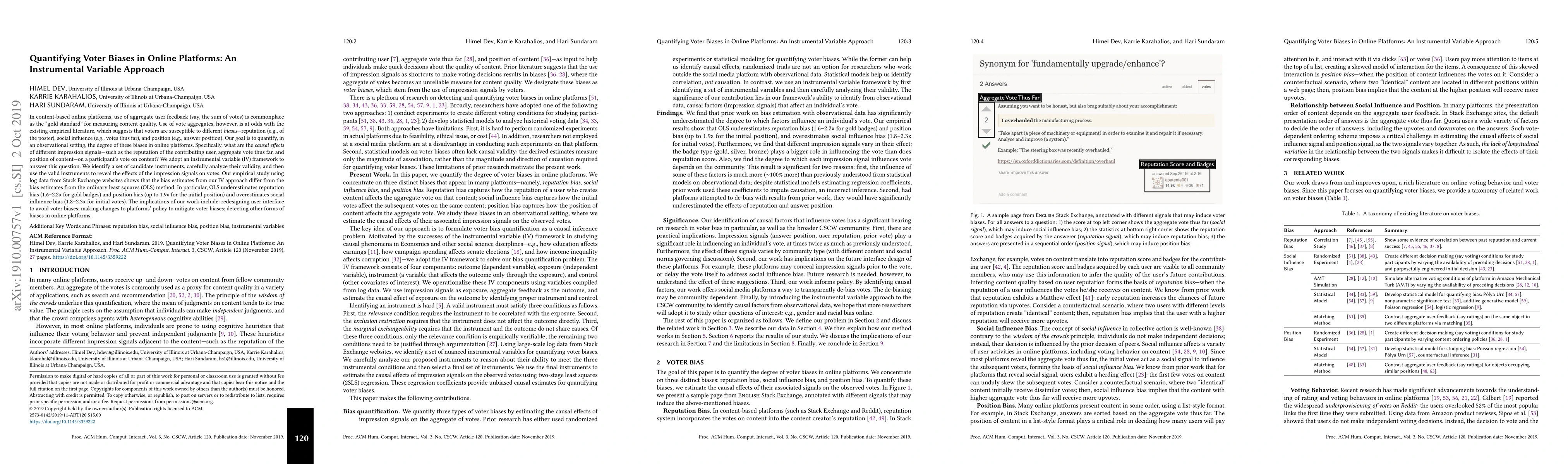 A study using an instrumental variable approach found that online platforms underestimate reputation bias and overestimate social influence bias when using vote aggregates to measure content quality, suggesting the need for platform redesign and policy changes to mitigate biases.