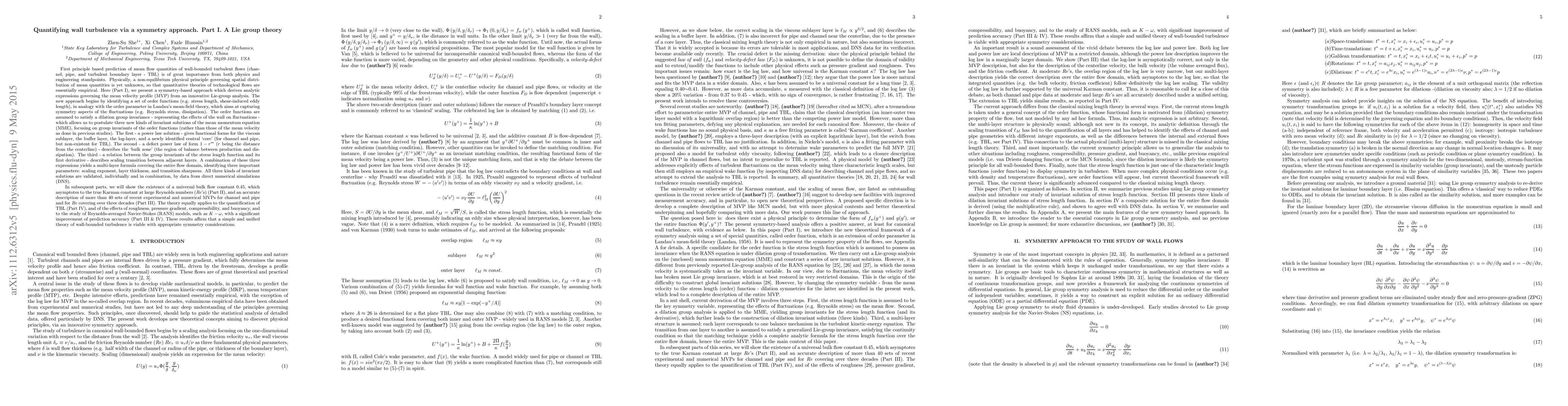 First principle based prediction of mean flow quantities of wall-bounded turbulent flows (channel, pipe, and turbulent boundary layer - TBL) is of great importance from both physics and engineering standpoints. Here (Part I), we present a symmetry-based approach which derives analytic expressions governing the mean velocity profile (MVP) from an innovative Lie-group analysis. The new approach begins by identifying a set of order functions (e.g. stress length, shear-induced eddy length), in analogy with the order parameter in Landau's mean-field theory, which aims at capturing symmetry aspects of the fluctuations (e.g. Reynolds stress, dissipation). The order functions are assumed to satisfy a dilation group invariance - representing the effects of the wall on fluctuations - which allows us to postulate three new kinds of invariant solutions of the mean momentum equation (MME), focusing on group invariants of the order functions (rather than those of the mean velocity as done in previous studies). The first - a power law solution - gives functional forms for the viscous sublayer, the buffer layer, the log-layer, and a newly identified central `core' (for channel and pipe, but non-existent for TBL). The second - a defect power law of form $1-r^{m}$ ($r$ being the distance from the center line) - describes the `bulk zone' (the region of balance between production and dissipation). The third - a relation between the group invariants of the stress length function and its first derivative - describes scaling transition between adjacent layers. A combination of these three expressions yields a multi-layer formula covering the entire flow domain, identifying three important parameters: scaling exponent, layer thickness, and transition sharpness. All three kinds of invariant solutions are validated, individually and in combination, by data from direct numerical simulations (DNS).