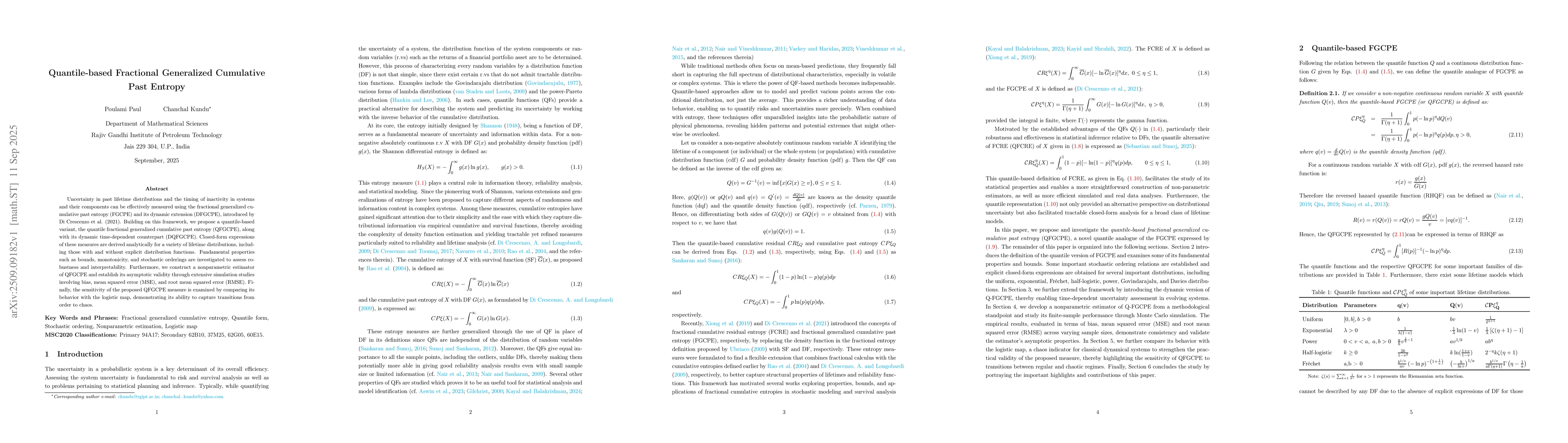 Uncertainty in past lifetime distributions and the timing of inactivity in systems and their components can be effectively measured using the fractional generalized cumulative past entropy (FGCPE) and its dynamic extension (DFGCPE), introduced by Di Crescenzo et al. (2021). Building on this framework, we propose a quantile-based variant, the quantile fractional generalized cumulative past entropy (QFGCPE), along with its dynamic time-dependent counterpart (DQFGCPE). Closed-form expressions of these measures are derived analytically for a variety of lifetime distributions, including those with and without explicit distribution functions. Fundamental properties such as bounds, monotonicity, and stochastic orderings are investigated to assess robustness and interpretability. Furthermore, we construct a nonparametric estimator of QFGCPE and establish its asymptotic validity through extensive simulation studies involving bias, mean squared error (MSE), and root mean squared error (RMSE). Finally, the sensitivity of the proposed QFGCPE measure is examined by comparing its behavior with the logistic map, demonstrating its ability to capture transitions from order to chaos.