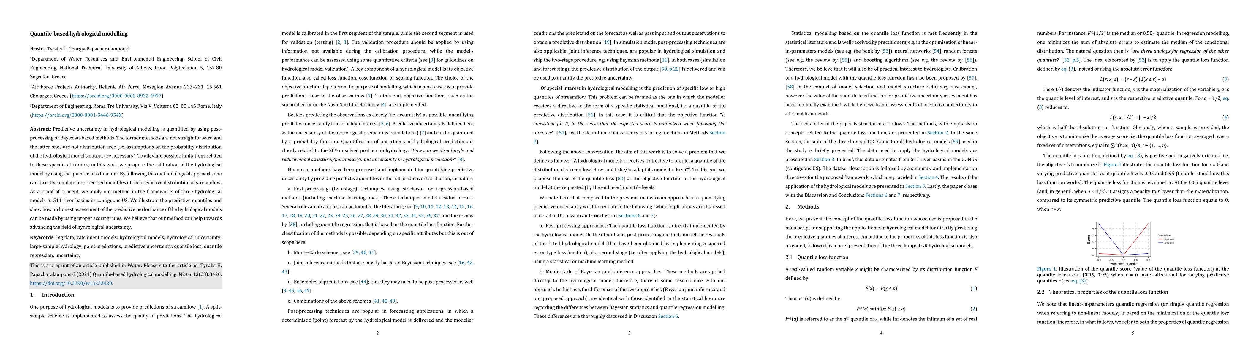 This paper proposes a quantile-based approach to hydrological modelling that directly simulates specific quantiles of streamflow, aiming to quantify predictive uncertainty without relying on distributional assumptions. The method is demonstrated across three hydrological models applied to 511 US river basins, showing its potential to advance hydrological uncertainty assessment.