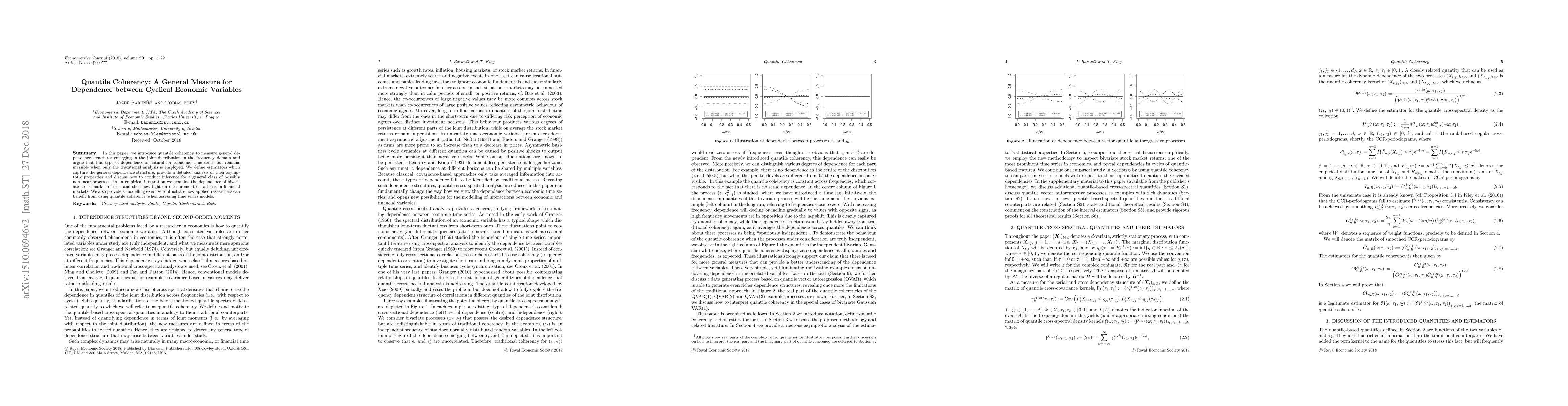 This paper introduces quantile coherency as a novel measure for assessing general dependence structures in economic time series, especially in the frequency domain. It provides estimators for this measure, analyzes their properties, and demonstrates its application in examining stock market returns and measuring tail risk.