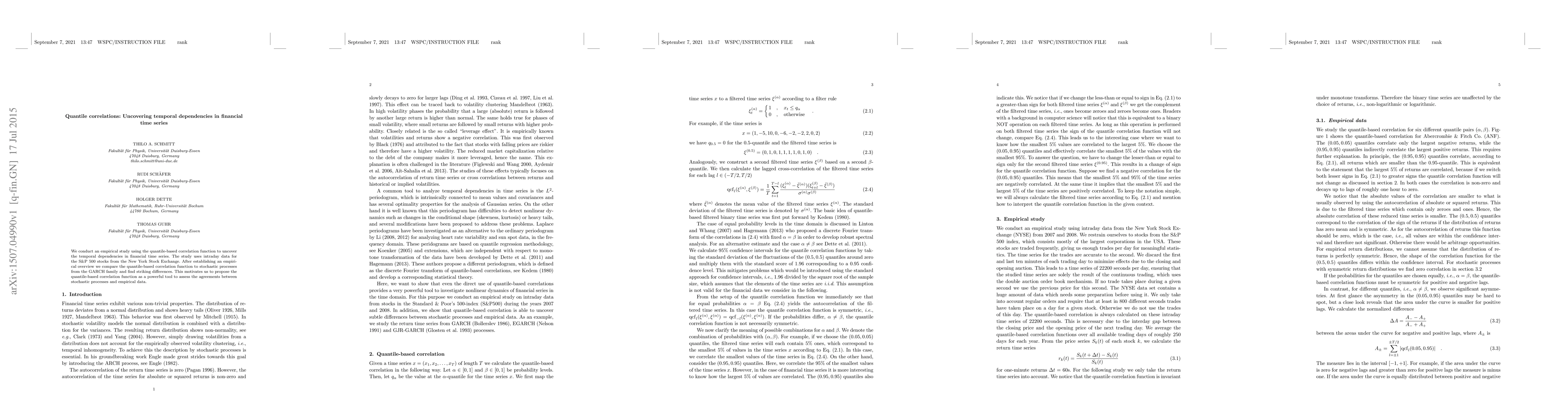 We conduct an empirical study using the quantile-based correlation function to uncover the temporal dependencies in financial time series. The study uses intraday data for the S\&P 500 stocks from the New York Stock Exchange. After establishing an empirical overview we compare the quantile-based correlation function to stochastic processes from the GARCH family and find striking differences. This motivates us to propose the quantile-based correlation function as a powerful tool to assess the agreements between stochastic processes and empirical data.