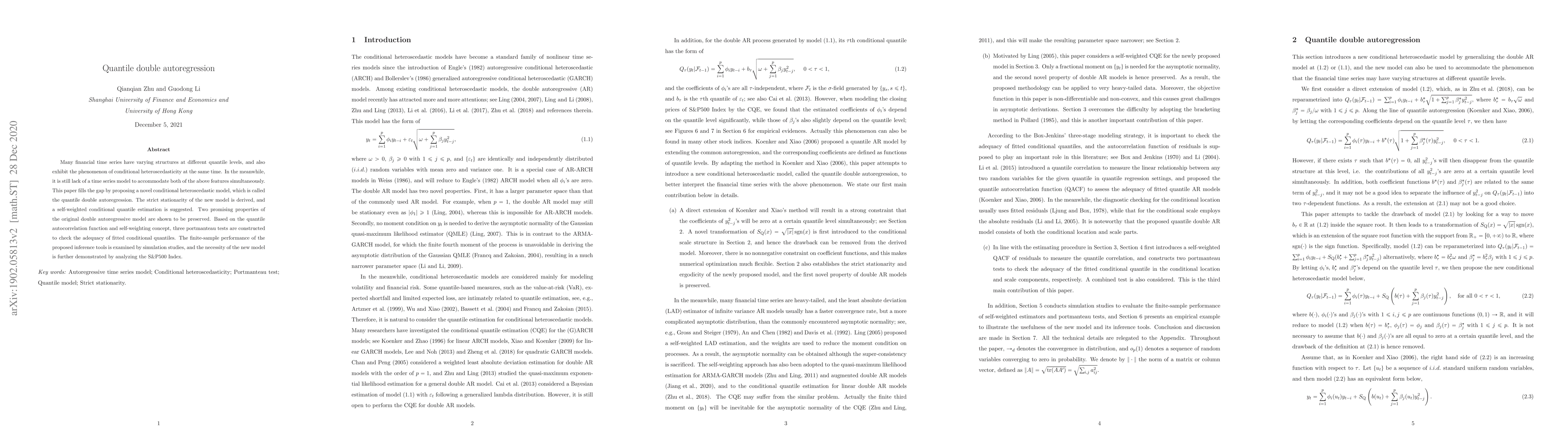 This paper introduces a new quantile double autoregression model to address financial time series with varying quantile structures and conditional heteroscedasticity. The model's strict stationarity is proven, and a self-weighted conditional quantile estimation method is proposed, demonstrating the preservation of key properties from the original model.