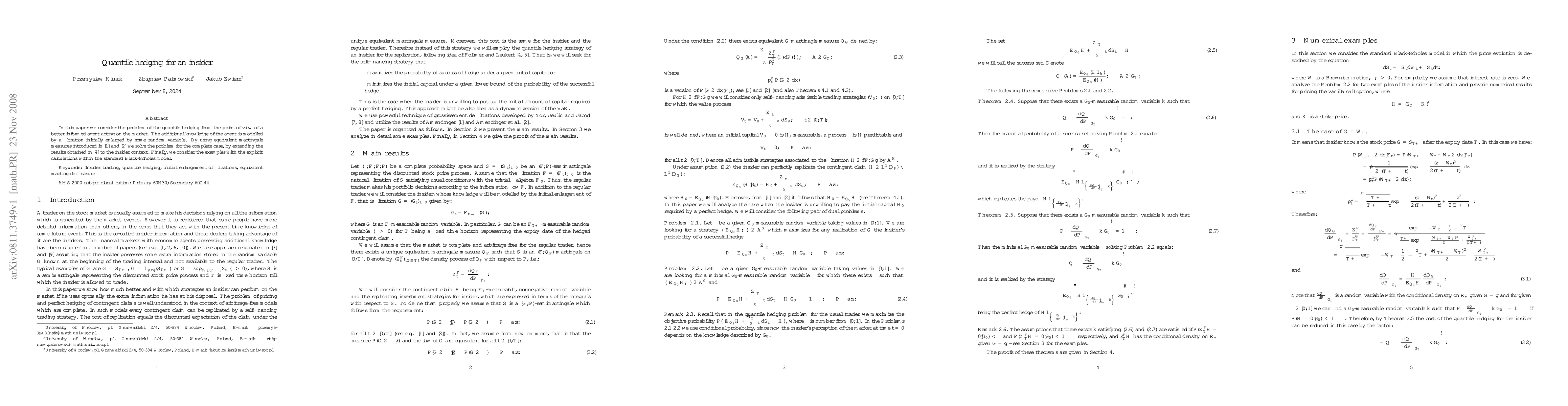This paper develops a quantile hedging strategy for an insider in financial markets, accounting for their additional knowledge using equivalent martingale measures. It provides explicit calculations within the standard Black-Scholes model to demonstrate key findings.