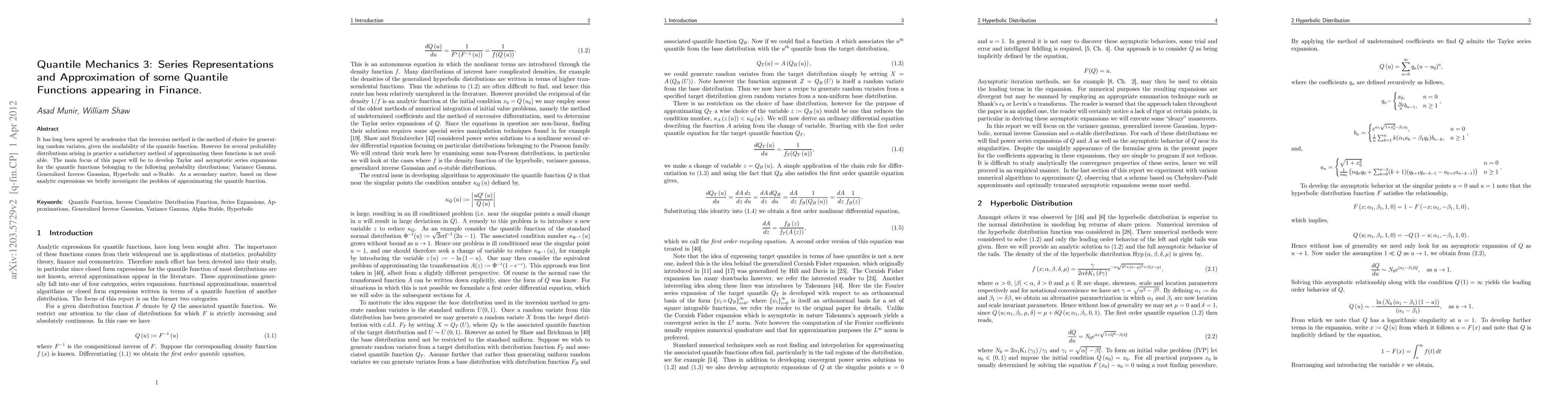 It has long been agreed by academics that the inversion method is the method of choice for generating random variates, given the availability of the quantile function. However for several probability distributions arising in practice a satisfactory method of approximating these functions is not available. The main focus of this paper will be to develop Taylor and asymptotic series expansions for the quantile functions belonging to the following probability distributions; Variance Gamma, Generalized Inverse Gaussian, Hyperbolic and alpha-Stable. As a secondary matter, based on these analytic expressions we briefly investigate the problem of approximating the quantile function.