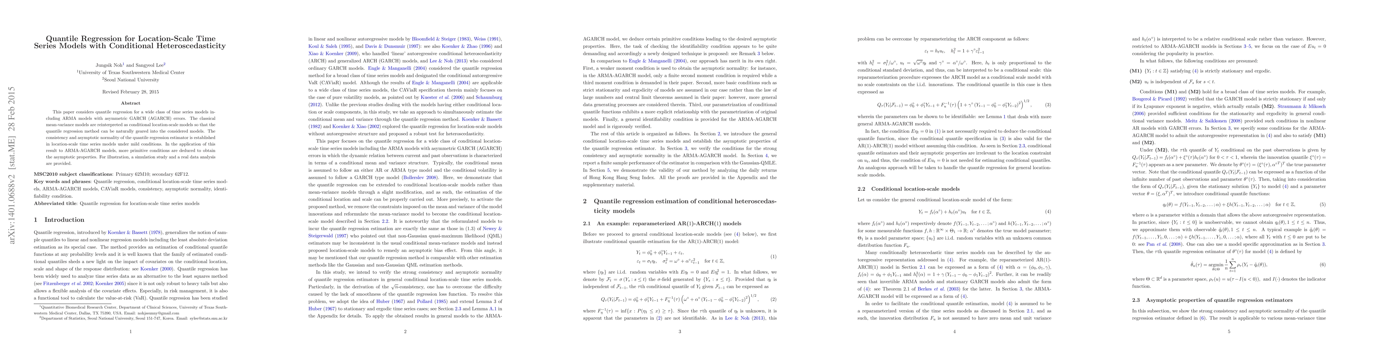This paper develops quantile regression for location-scale time series models with conditional heteroscedasticity, establishing consistency and asymptotic normality under mild conditions. It applies the method to ARMA-AGARCH models, providing a simulation study and real data analysis for illustration.
