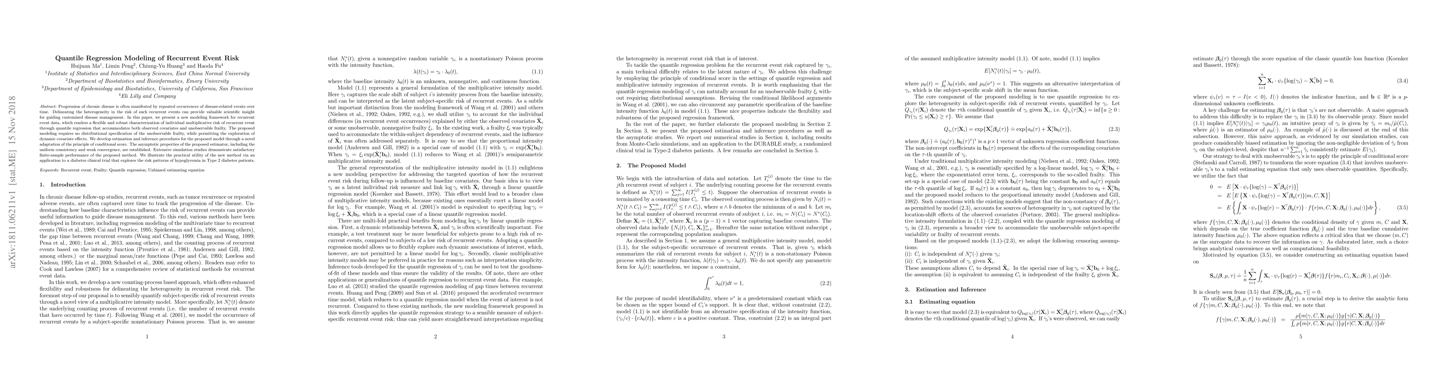A new modeling framework for recurrent event data uses quantile regression to characterize individual risk of repeated events in chronic diseases without specifying unobservable frailty. The method demonstrates satisfactory performance and practical utility through a diabetes clinical trial application.