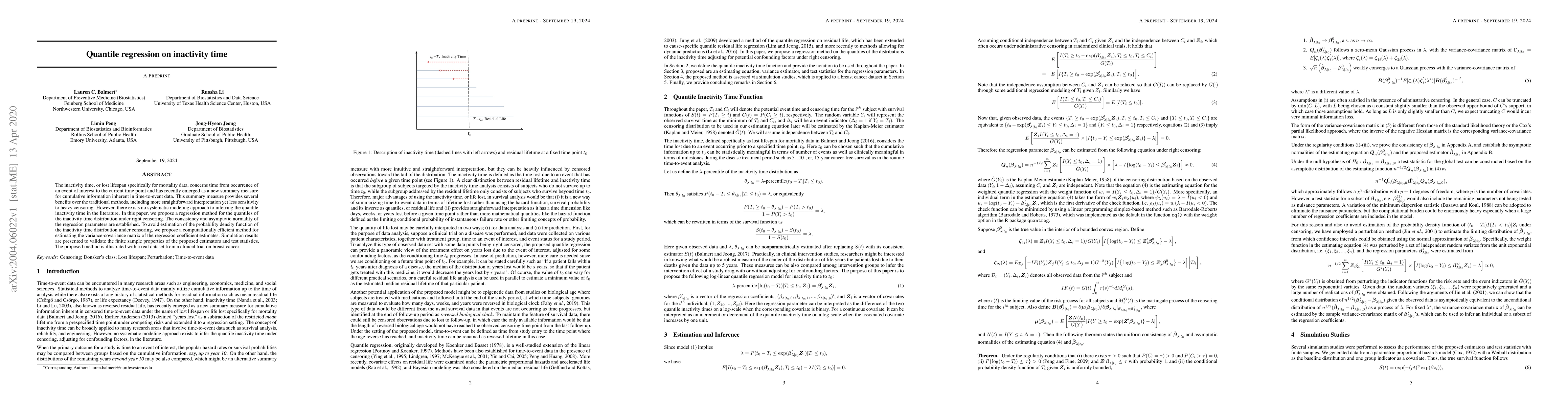 This paper introduces a novel regression method for estimating quantiles of inactivity time, a new summary measure for time-to-event data, under right censoring. It establishes consistency and asymptotic normality of the regression parameters and presents a computationally efficient method for variance-covariance matrix estimation, validated through simulations and a breast cancer clinical trial dataset.