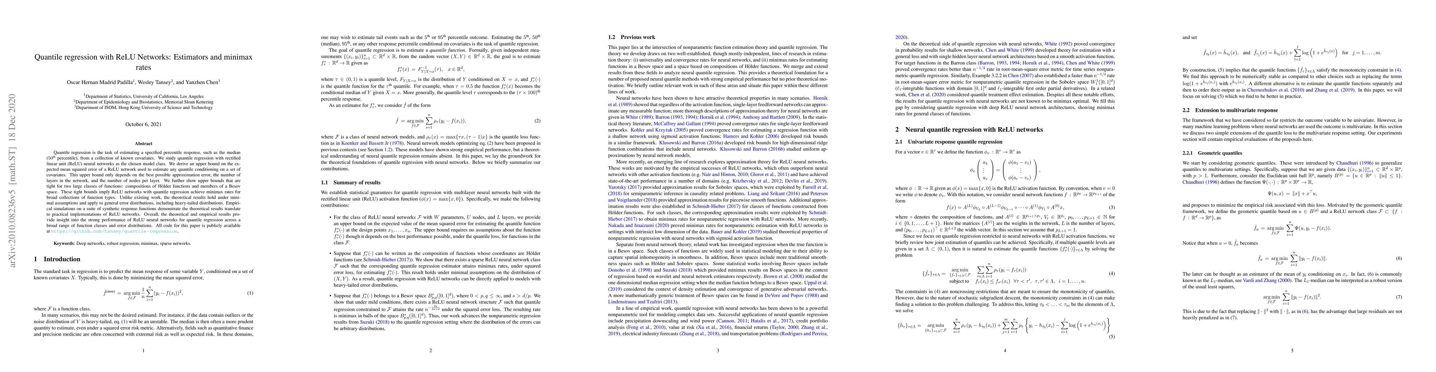 This paper investigates quantile regression using deep ReLU networks, deriving tight upper bounds on the mean squared error that depend on network architecture and approximation error. The theoretical results show that ReLU networks achieve optimal minimax rates for various function types, even under heavy-tailed distributions, validated by empirical simulations.