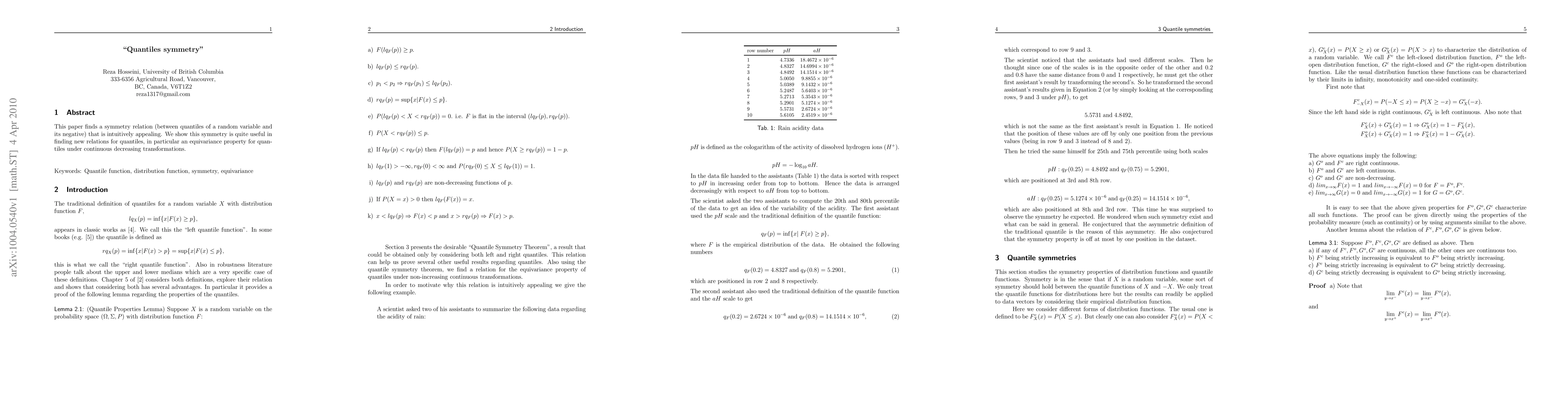 This paper finds a symmetry relation (between quantiles of a random variable and its negative) that is intuitively appealing. We show this symmetry is quite useful in finding new relations for quantiles, in particular an equivariance property for quantiles under continuous decreasing transformations.