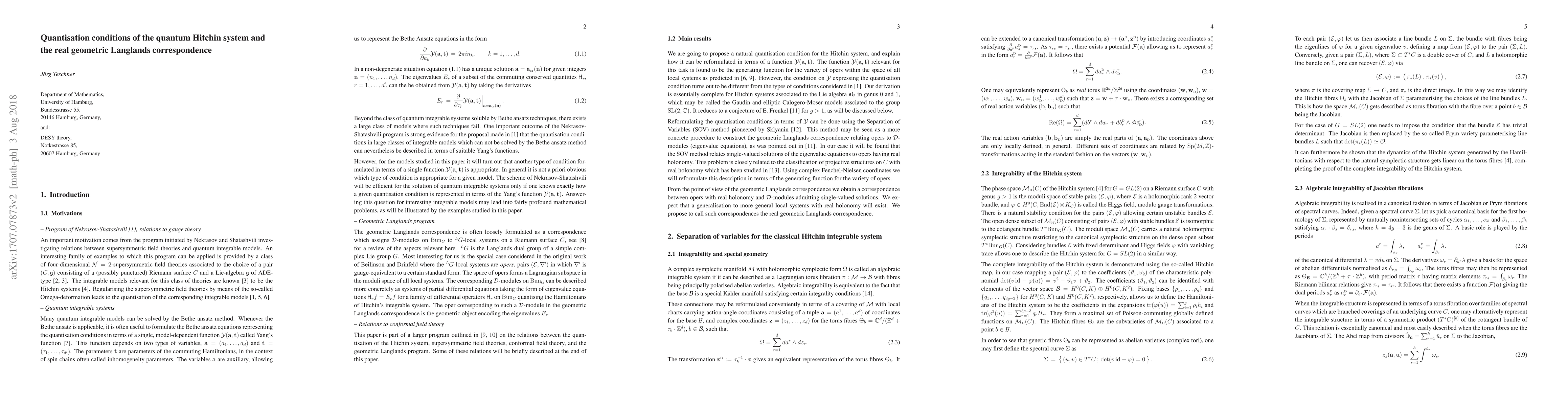 This paper proposes single-valuedness of eigenfunctions of quantised Hitchin Hamiltonians as a quantisation condition, linking the classification of eigenstates to projective structures with real holonomy, and reformulating these conditions via complex Fenchel-Nielsen coordinates to interpret them as a variant of the geometric Langlands correspondence.