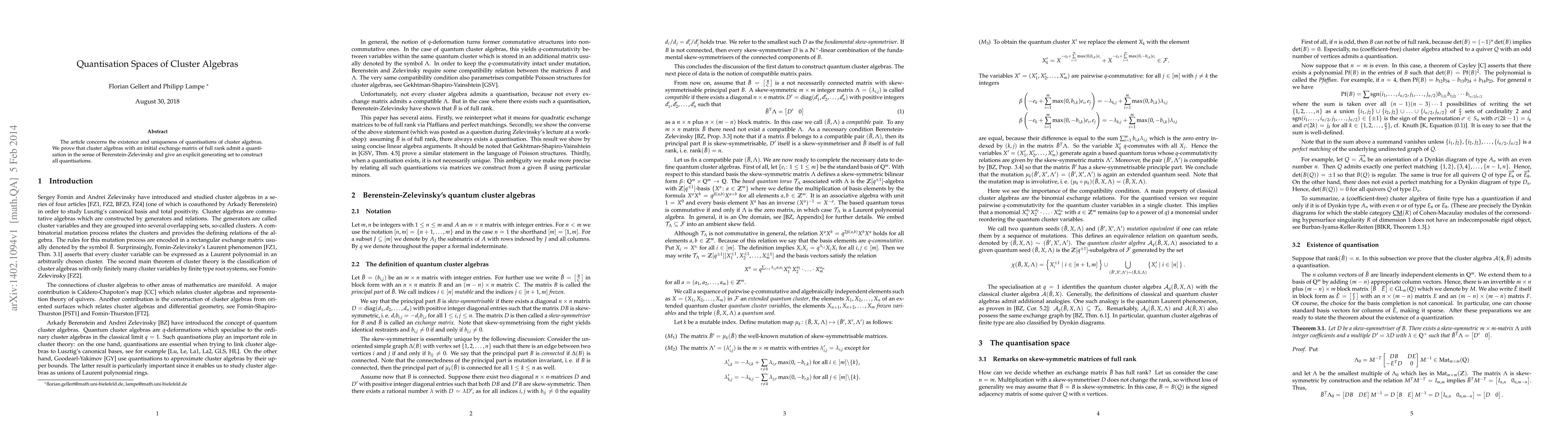 Cluster algebras with full-rank initial exchange matrices can be quantised using a Berenstein-Zelevinsky quantisation, and an explicit generating set is provided to construct all possible quantisations.