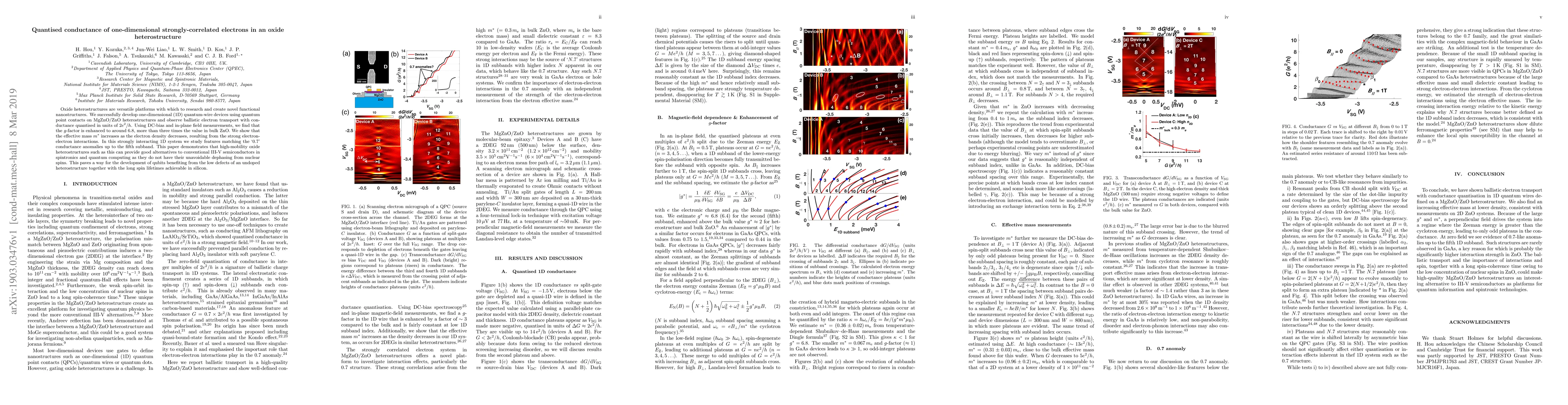 This paper reports the development of one-dimensional quantum-wire devices in MgZnO/ZnO heterostructures, showing ballistic electron transport with conductance quantised in units of 2e²/h, and suggests that these high-mobility oxide heterostructures can serve as alternatives to III-V semiconductors in spintronics and quantum computing due to their low defect rates and long spin lifetimes.