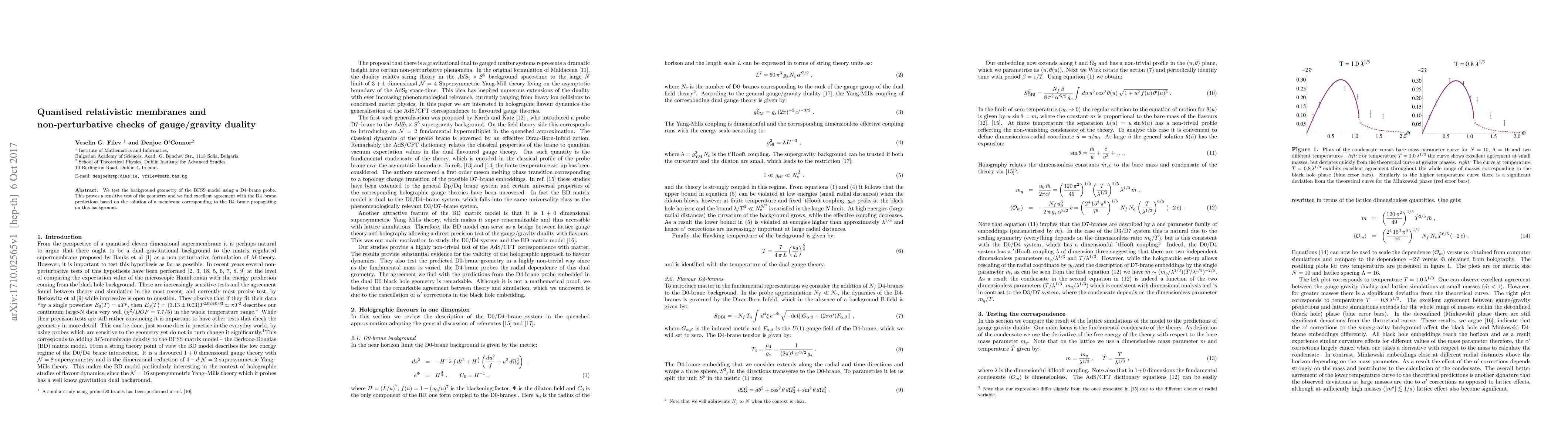 This paper tests the background geometry of the BFSS model via a D4-brane probe, demonstrating strong agreement with predictions from a membrane solution, thus providing a non-perturbative check of gauge/gravity duality. The results validate the model's geometry and its implications for relativistic membranes.
