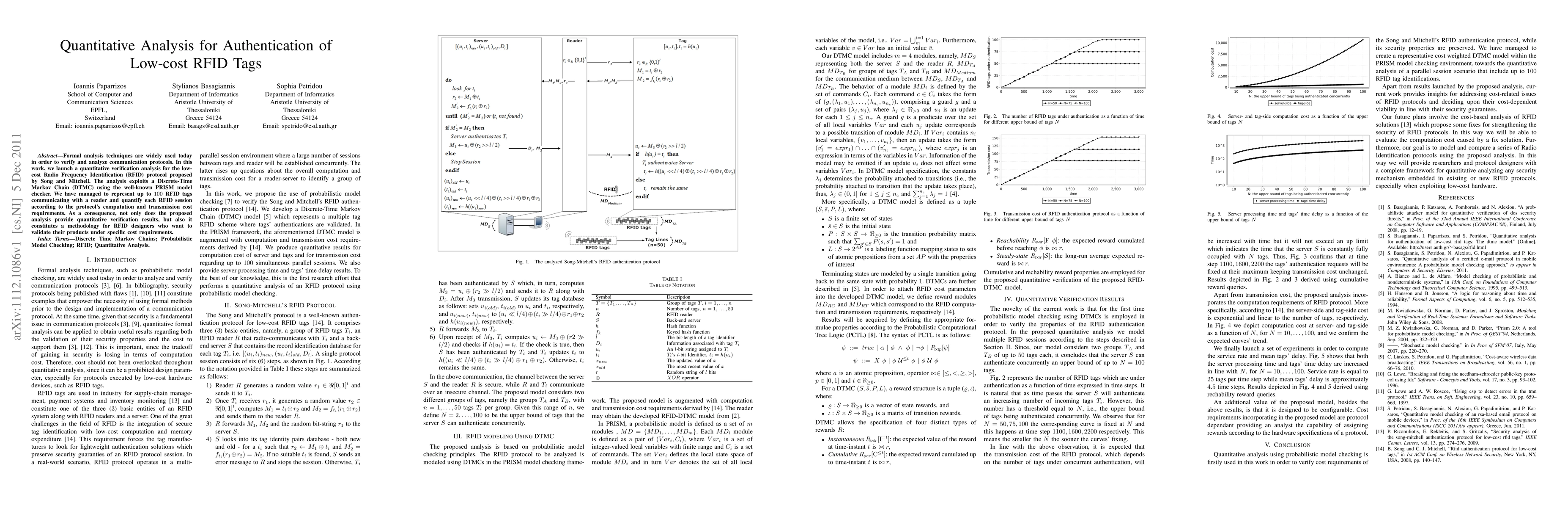 This research uses probabilistic model checking to analyze the cost requirements of the Song and Mitchell's RFID authentication protocol.