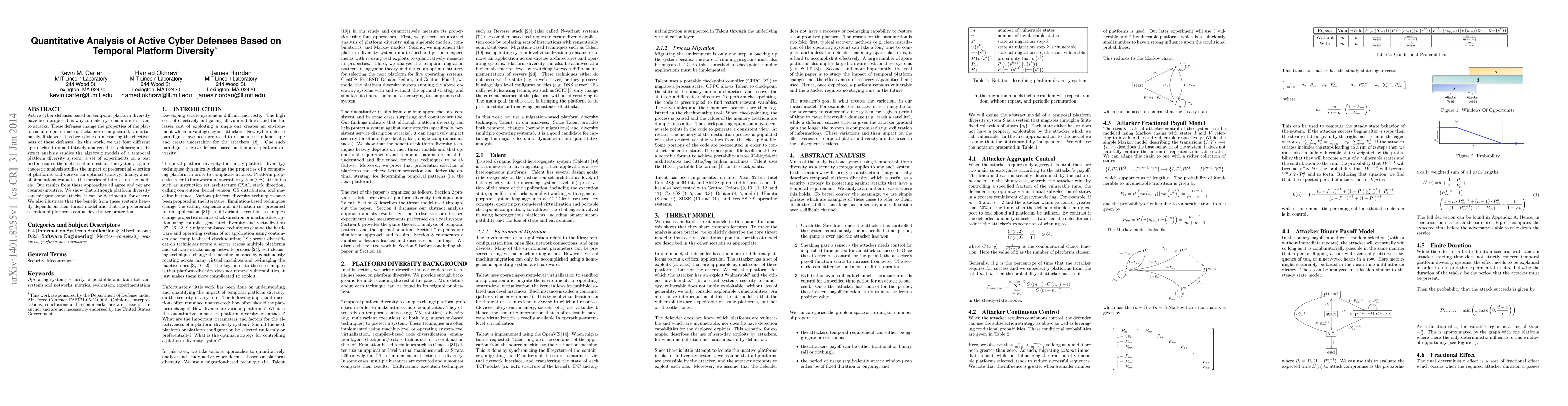 This paper quantitatively analyzes the effectiveness of active cyber defenses based on temporal platform diversity, employing four approaches: abstract analysis, experiments, game theory, and simulations. The findings reveal that while platform diversity can mitigate some attacks, it can be detrimental for others, and its benefits are highly dependent on the threat model and the selection of preferred platforms.