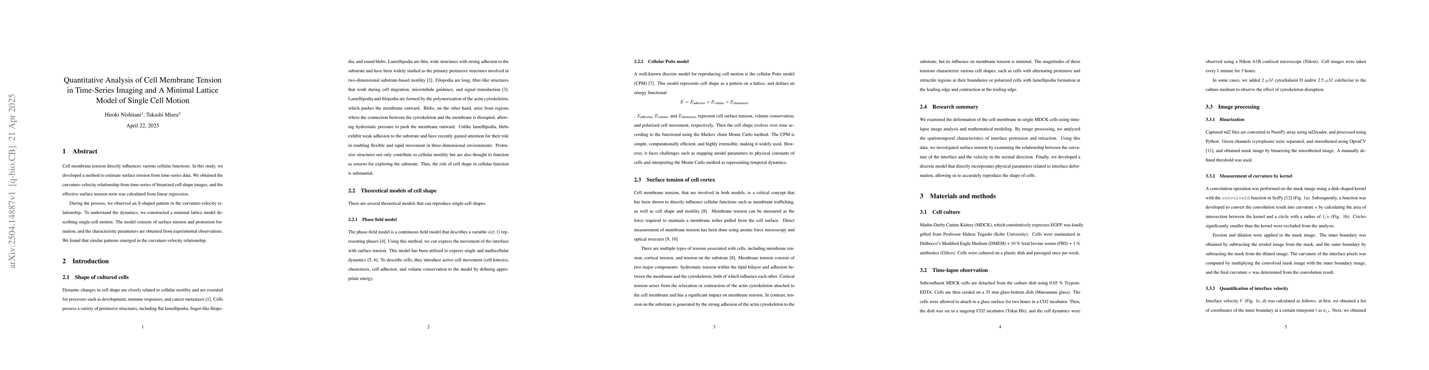 Researchers developed a method to estimate cell membrane tension from time-series data, revealing an S-shaped pattern in the relationship between curvature and velocity, and created a minimal lattice model to describe single-cell motion.