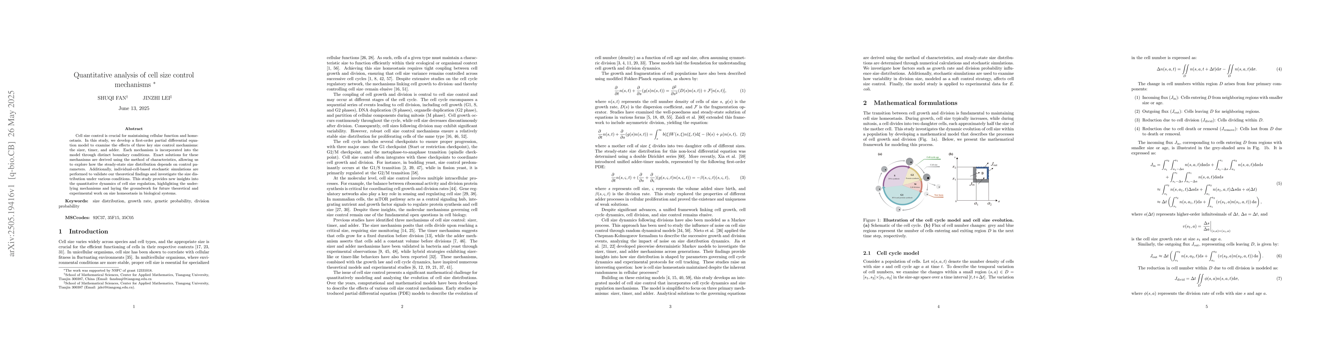 This study develops a mathematical model to understand cell size control mechanisms, including the sizer, timer, and adder, and uses simulations to validate its findings.
