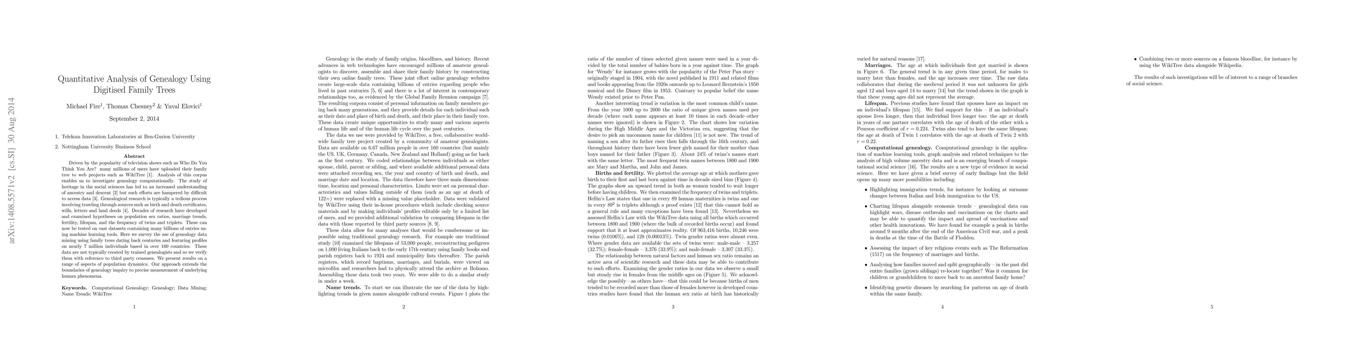 This paper explores the computational analysis of digitized family trees from web projects like WikiTree, enabling large-scale genealogical research. It verifies data against third-party censuses and uses machine learning to study population dynamics, revealing insights into sex ratios, marriage trends, and fertility.