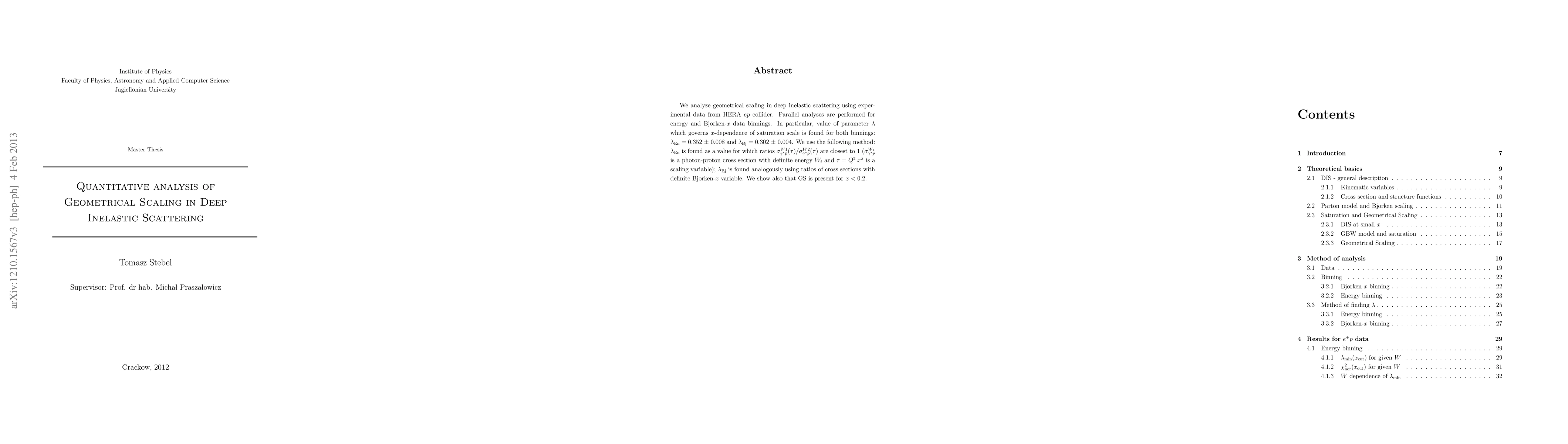 This paper quantitatively analyzes geometrical scaling in deep inelastic scattering using HERA collider data, finding \lambda_En = 0.352 ± 0.008 and \lambda_Bj = 0.302 ± 0.004 for energy and Bjorken-x binning respectively, confirming the presence of geometrical scaling for x<0.2.