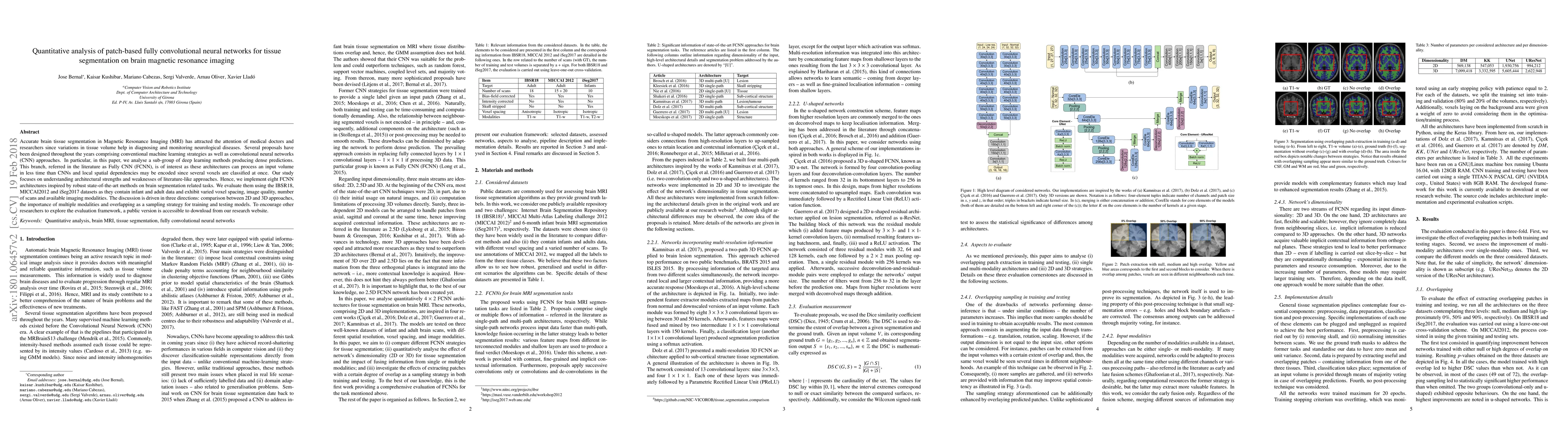 This paper quantitatively analyzes various patch-based fully convolutional neural networks (FCNN) for brain tissue segmentation in MRI, comparing 2D and 3D approaches and the impact of multiple modalities and overlapping sampling strategies. The study evaluates eight FCNN architectures on diverse datasets to identify architectural strengths and weaknesses.