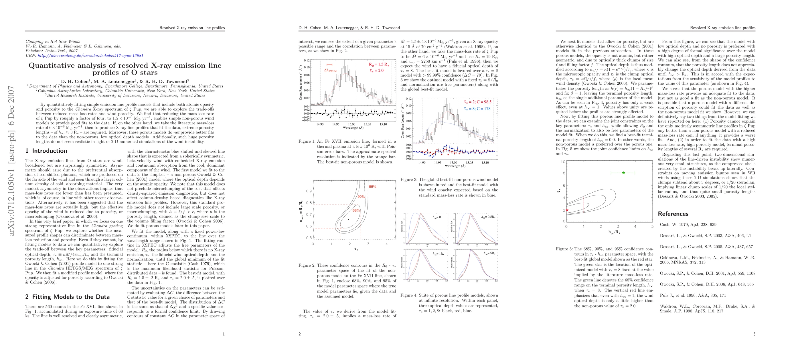By quantitatively fitting simple emission line profile models that include both atomic opacity and porosity to the Chandra X-ray spectrum of $\zeta$ Pup, we are able to explore the trade-offs between reduced mass-loss rates and wind porosity. We find that reducing the mass-loss rate of $\zeta$ Pup by roughly a factor of four, to 1.5 \times 10^{-6} M_sun/yr, enables simple non-porous wind models to provide good fits to the data. If, on the other hand, we take the literature mass-loss rate of 6 \times 10^{-6} M_sun/yr, then to produce X-ray line profiles that fit the data, extreme porosity lengths -- of $h_{\infty} \approx 3$ Rstar -- are required. Moreover, these porous models do not provide better fits to the data than the non-porous, low optical depth models. Additionally, such huge porosity lengths do not seem realistic in light of 2-D numerical simulations of the wind instability.