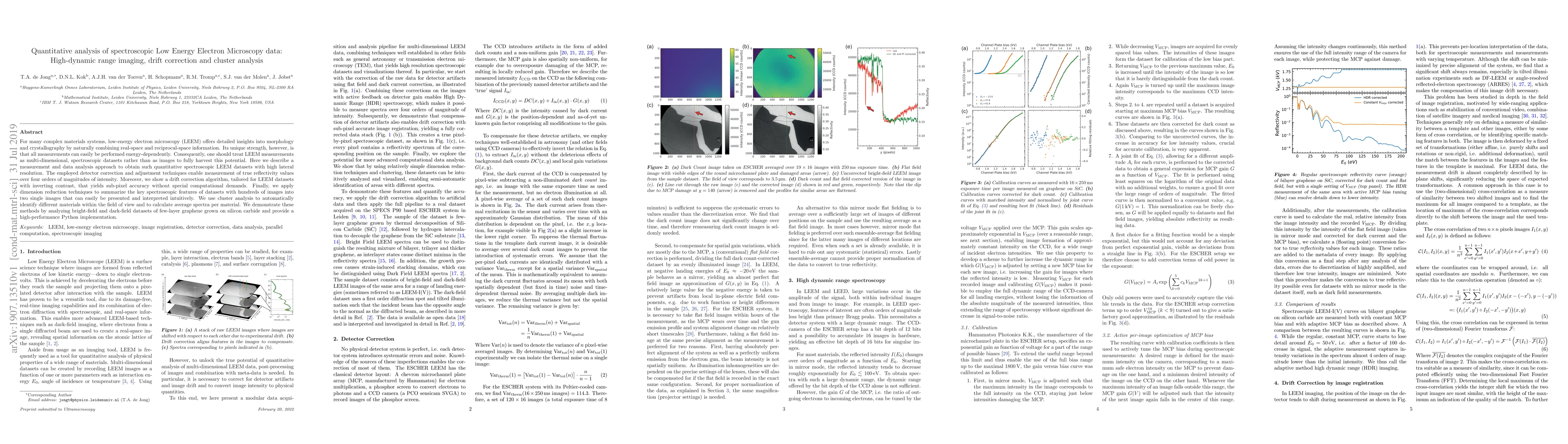 This paper presents a comprehensive approach for analyzing spectroscopic Low Energy Electron Microscopy (LEEM) data, focusing on high-dynamic range imaging, drift correction, and cluster analysis. The methods enable accurate quantitative measurements and sub-pixel drift correction, followed by dimension reduction to summarize complex datasets, facilitating intuitive interpretation and material identification.
